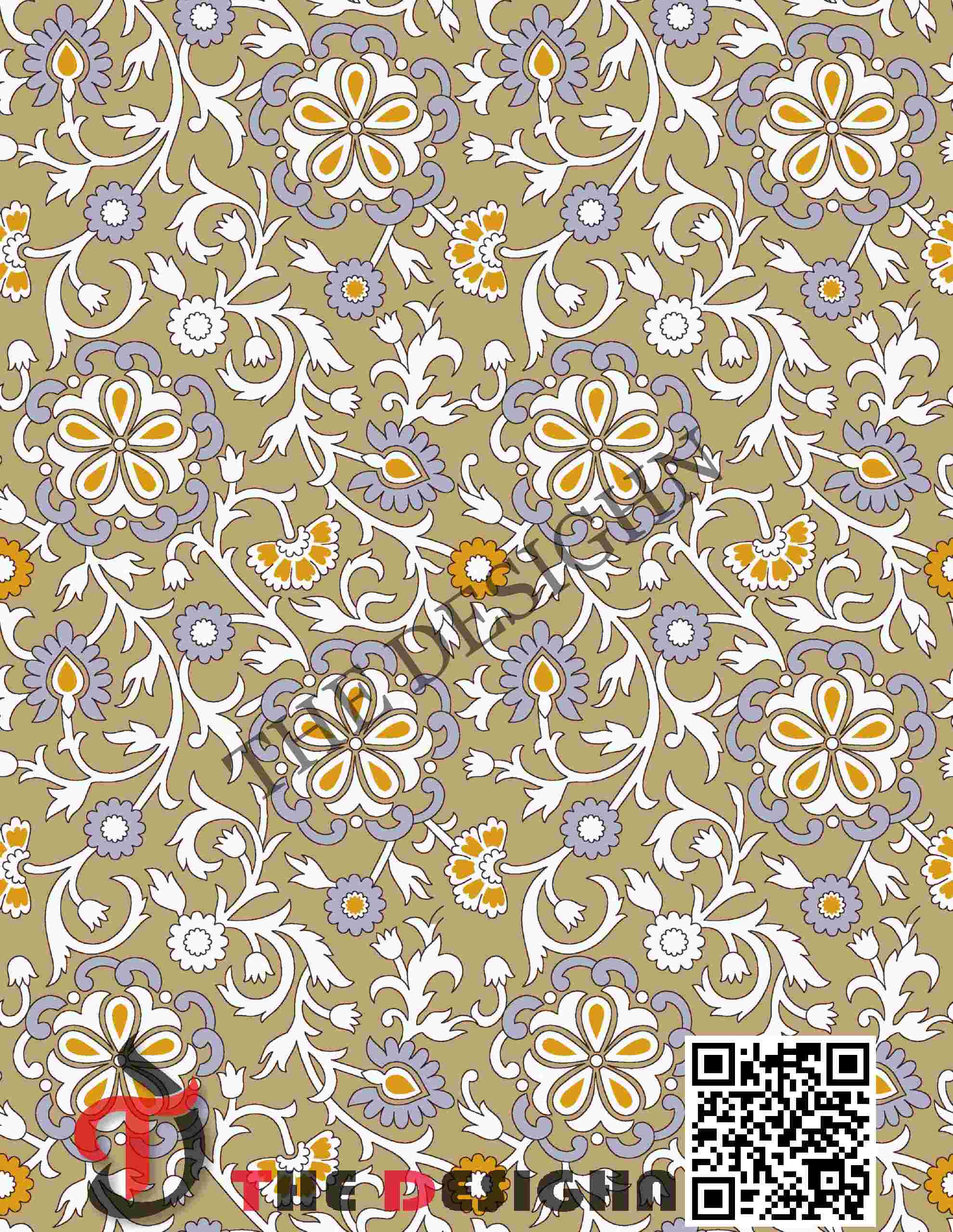 Pigment Dispersion (Zonal): The design features “High-Contrast Zonal Segmentation.” Saturated ochre and lavender pigments are dispersed in dense, opaque pockets within the primary motifs, immediately surrounded by wide areas of raw white space to ensure the intricate detail remains legible across the drift.