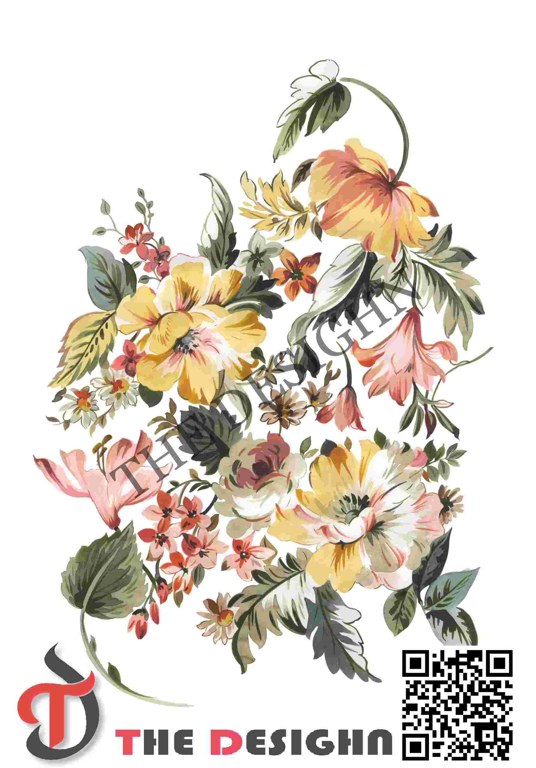 Pigment Dispersion (Zonal): The design features “Viscous Zonal Graduation.” Dispersion is strictly organized by the “radial” structure of the blooms. The color moves from high-density, opaque amber or coral centers to light, vaporous “washed” ivory textures at the petal tips, mimicking the natural movement of liquid pigments meeting a drying mineral surface.
