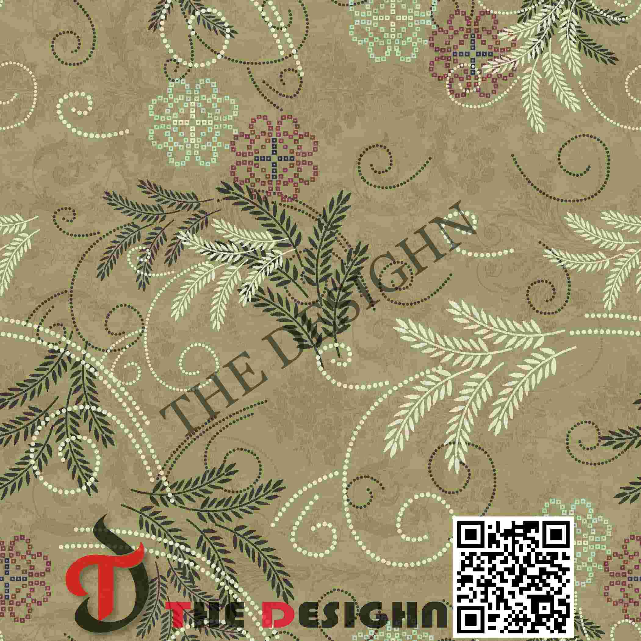Visual Dispersion (Mechanical): The design exhibits “Pointillist Stipple Dispersion”. The pigments within the vine trails and fern leaves are dispersed in fine, individual “ink-dots” characteristic of Hand-Stencil Work or Fine-Line Pointillism. This provides a tactile, “hand-crafted” surface quality where the forms are defined by dot density rather than solid ink blocks.