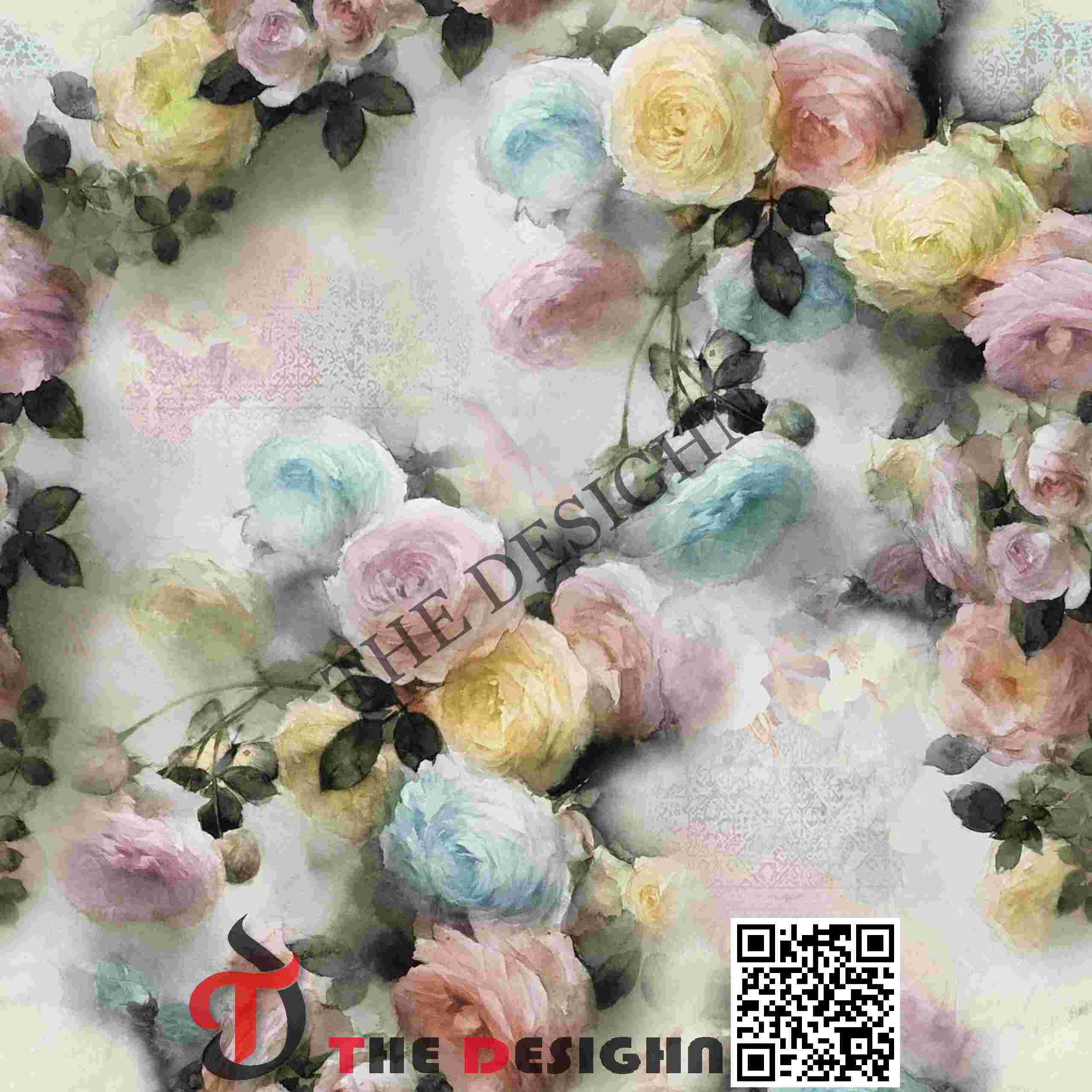 Visual Dispersion (Mottled): The primary roses exhibit “Internal Pigment Mottling.” The color is dispersed in soft, uneven clusters that suggest a high water-to-pigment ratio, where the various pastel tones bleed into one another to create a multi-dimensional, shimmering effect on the petals.