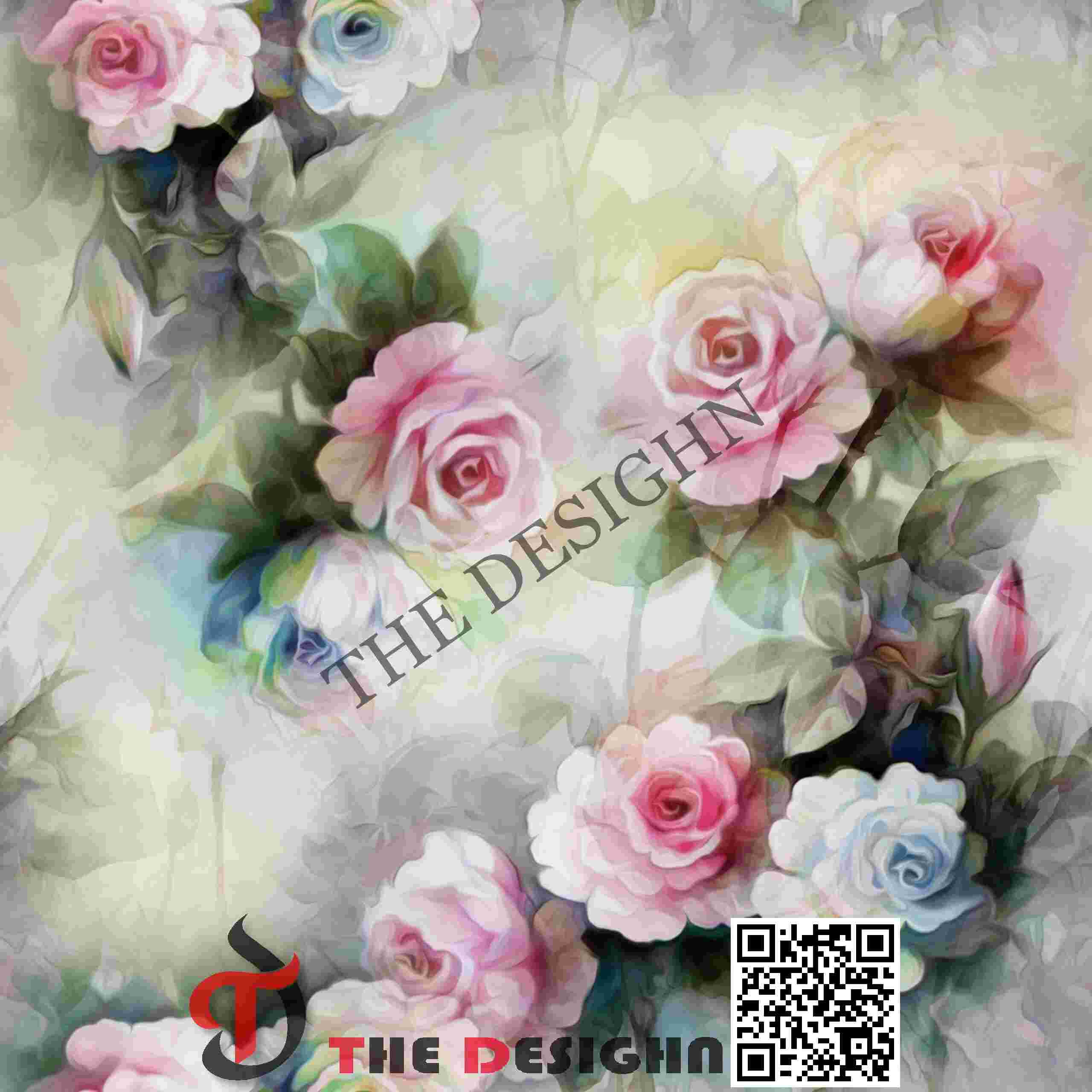 Visual Dispersion (Mottled): The primary roses exhibit “Internal Pigment Mottling.” The color is dispersed in soft, uneven clusters that suggest a high water-to-pigment ratio, where the pink and blue tones bleed into one another to create a multi-dimensional, shimmering effect on the petals.