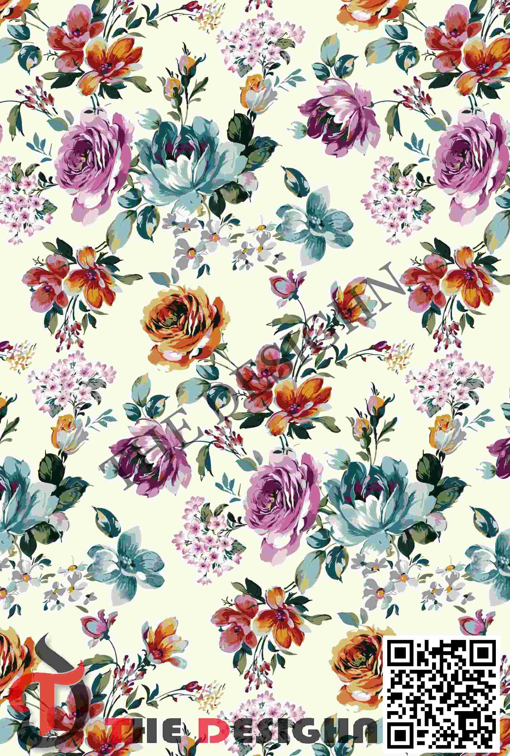 Edge Dispersion (Sharp-to-Defined): The boundaries of the main forms feature “Crisp Structural Dispersion”. Every flower and leaf maintains a sharp, distinct edge against the solid ivory background, ensuring the botanical drift remains organized and legible for fabric printing.