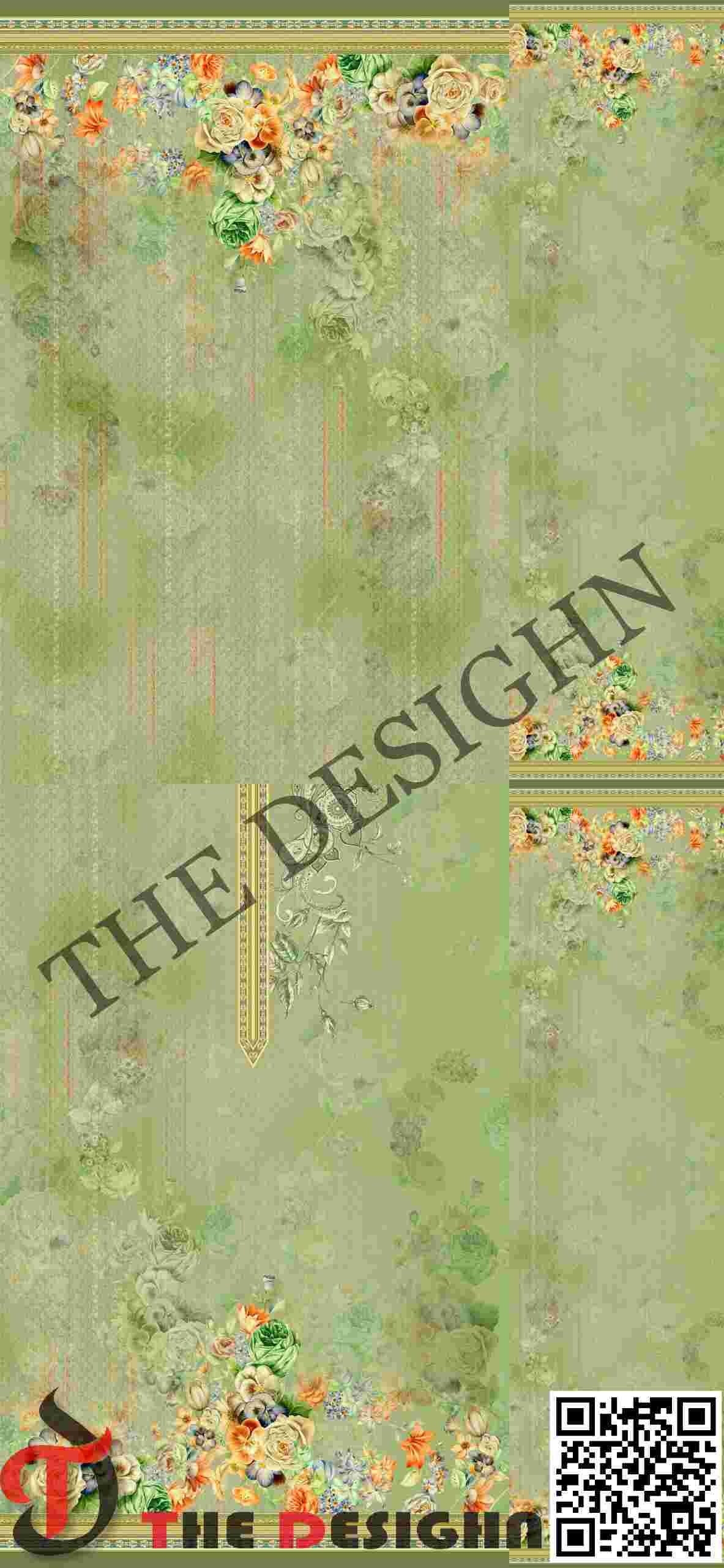 • Coordinated Sleeves: The panels on the right side showcase the sleeve designs, maintaining the pistachio ombre and rain-streak texture, finished with a smaller version of the main floral border.