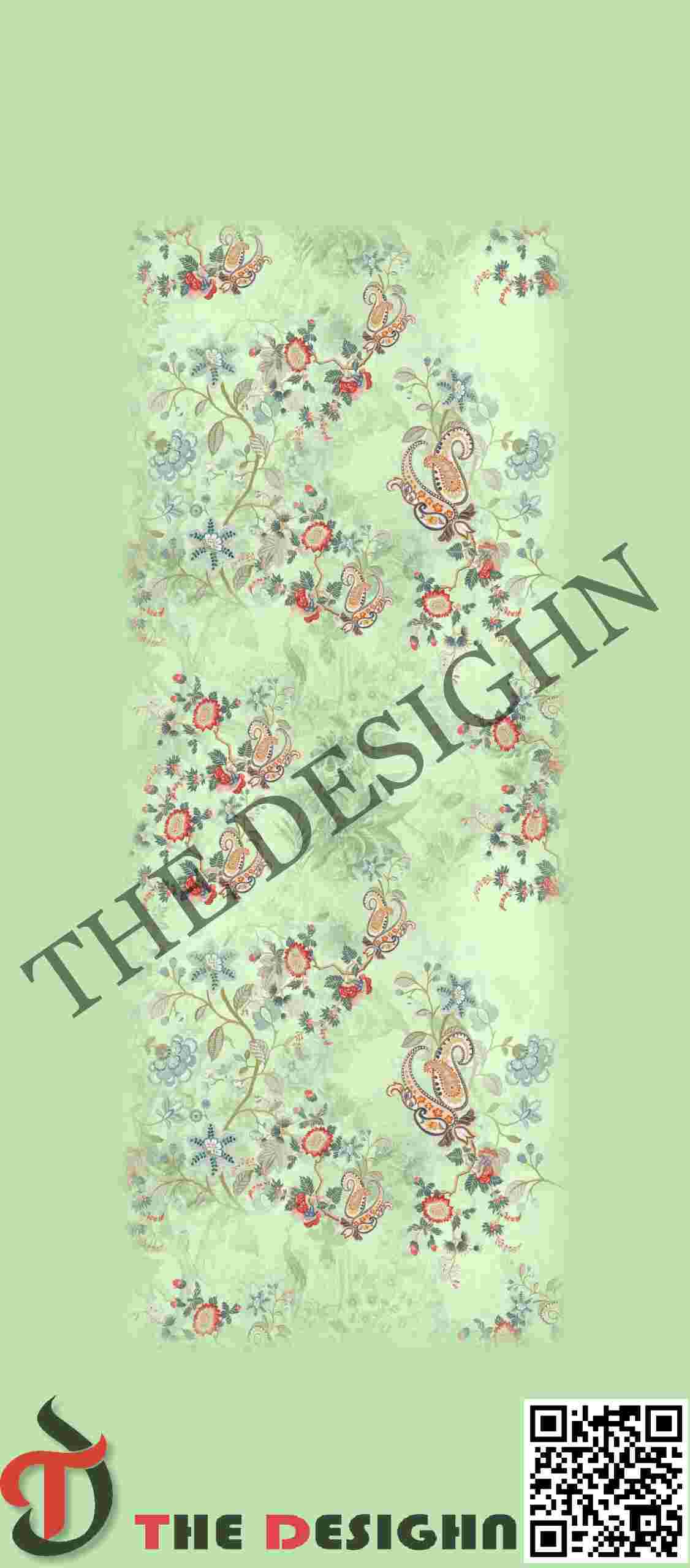 Traditional Paisley Accents: Interspersed throughout the floral trails are structured paisley (buta) motifs. These feature intricate internal detailing in terracotta and turquoise, providing a grounded, traditional South Asian anchor to the more fluid botanical elements.