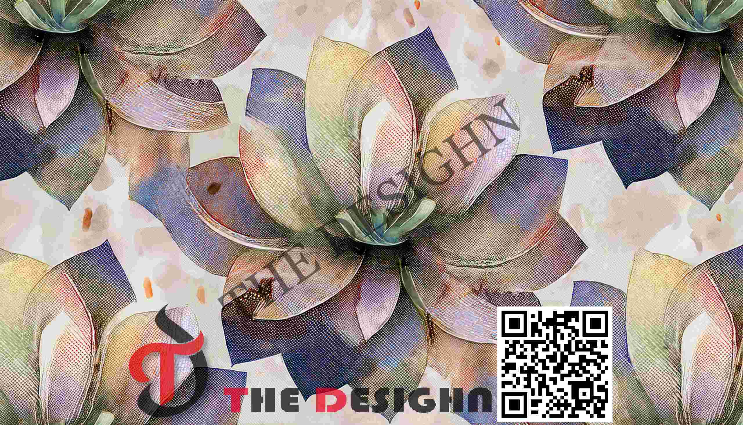 Texture Dispersion (Cross-Hatch): Certain petals feature “Cross-Hatch Dispersion.” Very fine, intersecting lines disperse the darker pigments (like the deep purples), providing a textural weight that contrasts with the lighter, dot-dispersed areas.