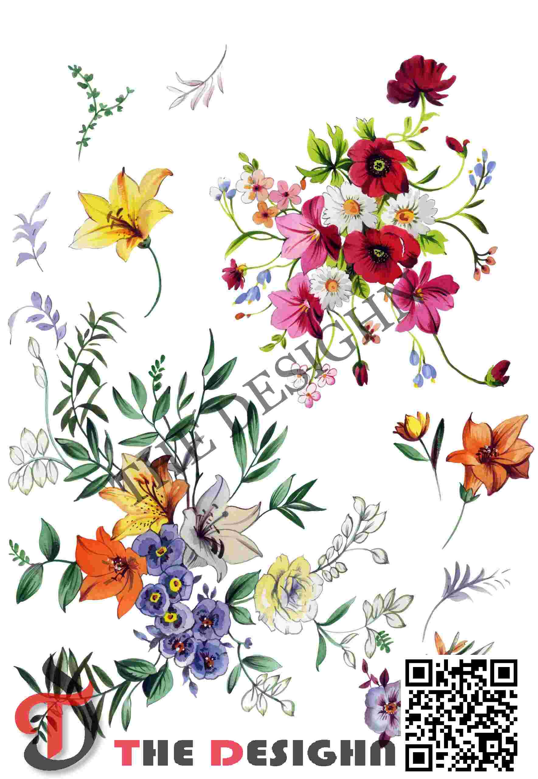 Pigment Dispersion (Zonal): The design features “Viscous Zonal Graduation.” Dispersion is strictly organized by the “radial” structure of the blooms. The color moves from high-density, opaque crimson and orange centers to light, vaporous “washed” tints at the petal tips, mimicking the natural movement of liquid pigments meeting a drying mineral surface.