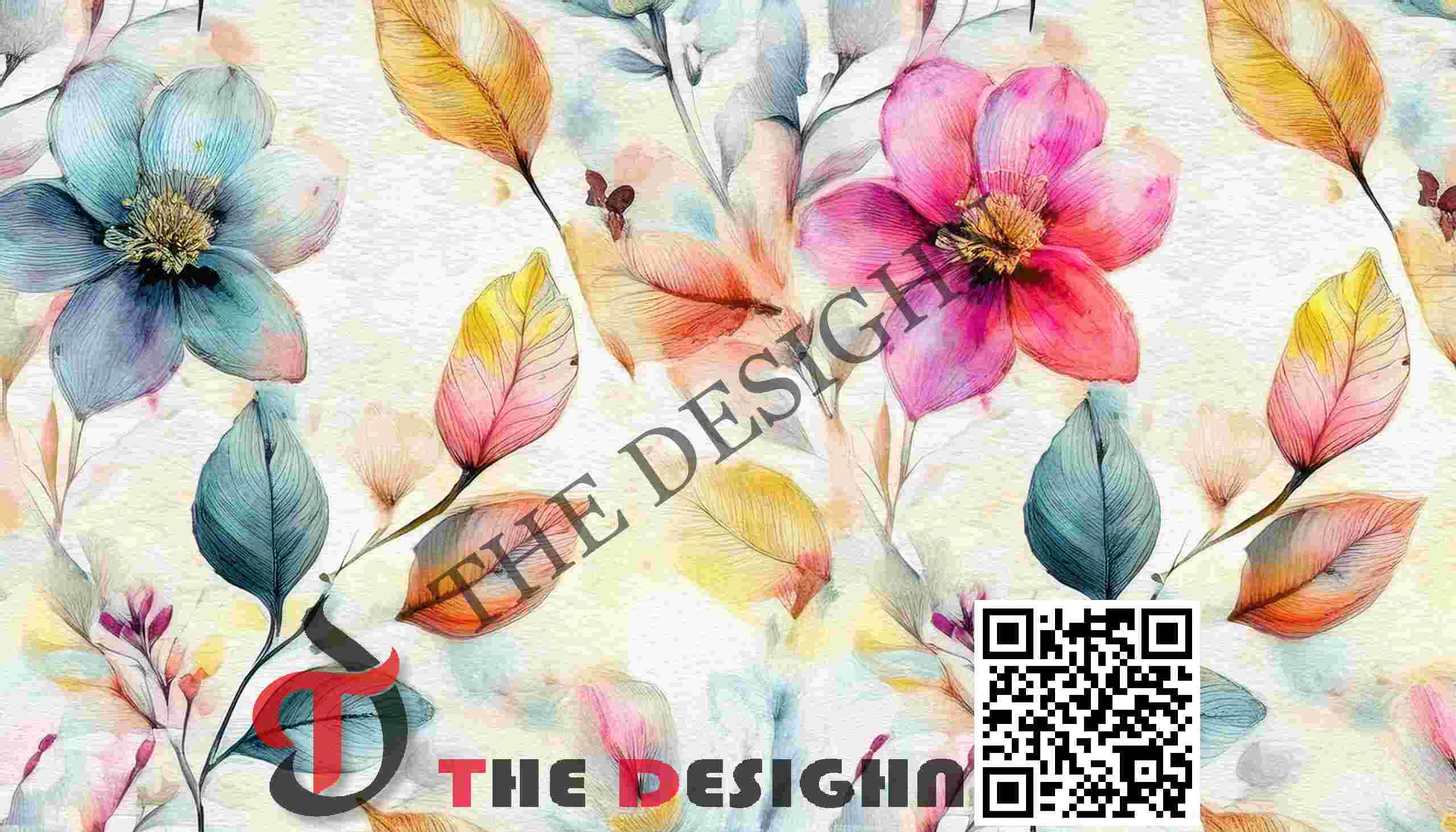 • Linear Dispersion (Veining): The leaf structures and flower centers feature “Rhythmic Linear Veining.” Fine, dark lines are dispersed along the contours and centers to provide structural definition, ensuring the vibrant washes maintain a sophisticated, illustrative shape.