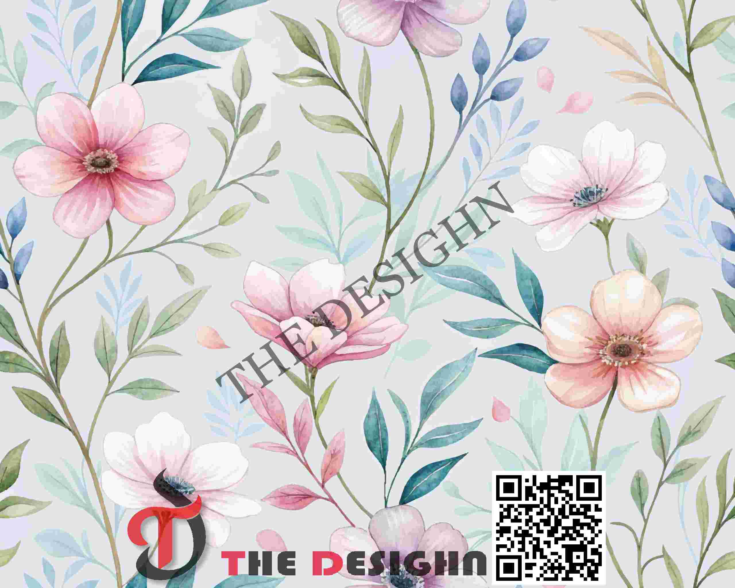 Edge Dispersion (Sharp-to-Defined): The boundaries of the main forms feature “Crisp Linear Dispersion”. Every flower and leaf maintains a sharp, distinct edge against the solid glacial-blue background, ensuring the botanical drift remains organized and legible for fabric printing.