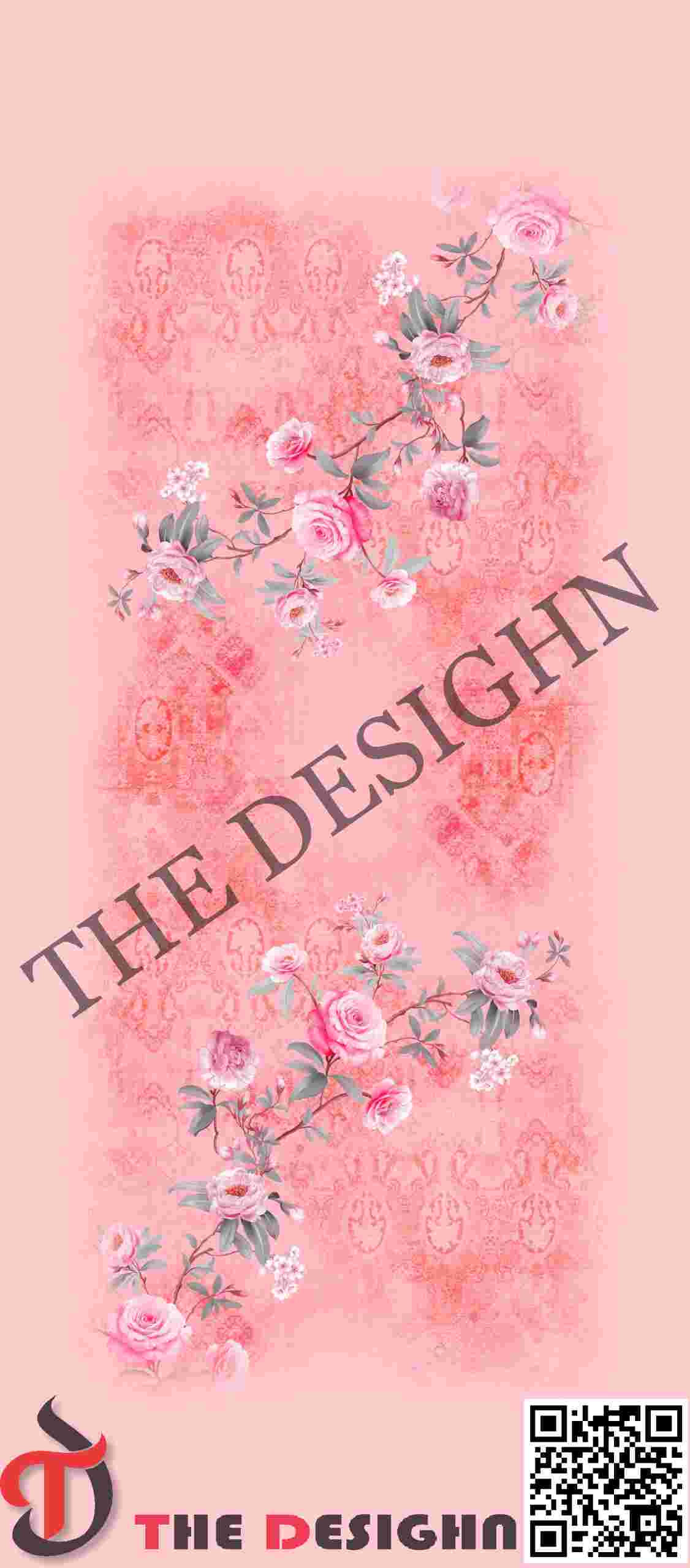 Monochromatic Foliage: The leaves and stems are rendered in a cool ash grey, which helps balance the intense warmth of the pink palette and adds a contemporary, sophisticated edge to the floral art.
