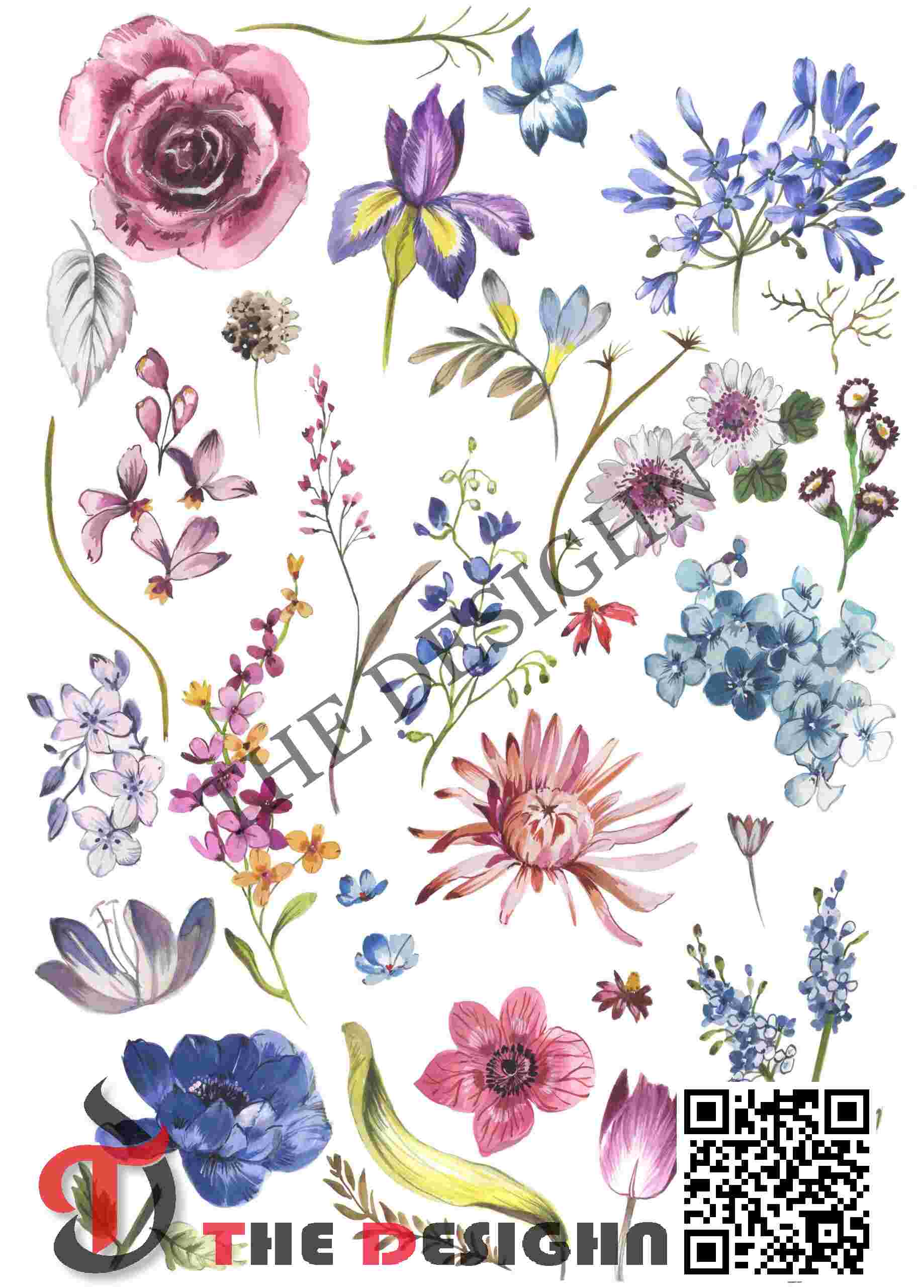 Visual Dispersion (Mechanical): The design exhibits “Aqueous Scumble-Mottling Dispersion.” The pigments are dispersed in a combination of smooth, liquid washes and high-friction “dry-brush” accents characteristic of Wet-on-Dry Watercolor. This provides a tactile “velvet” surface quality where color density is intentionally broken at the petal perimeters to mimic natural light refraction, allowing the background white to “vibrate” through the darker tones.
