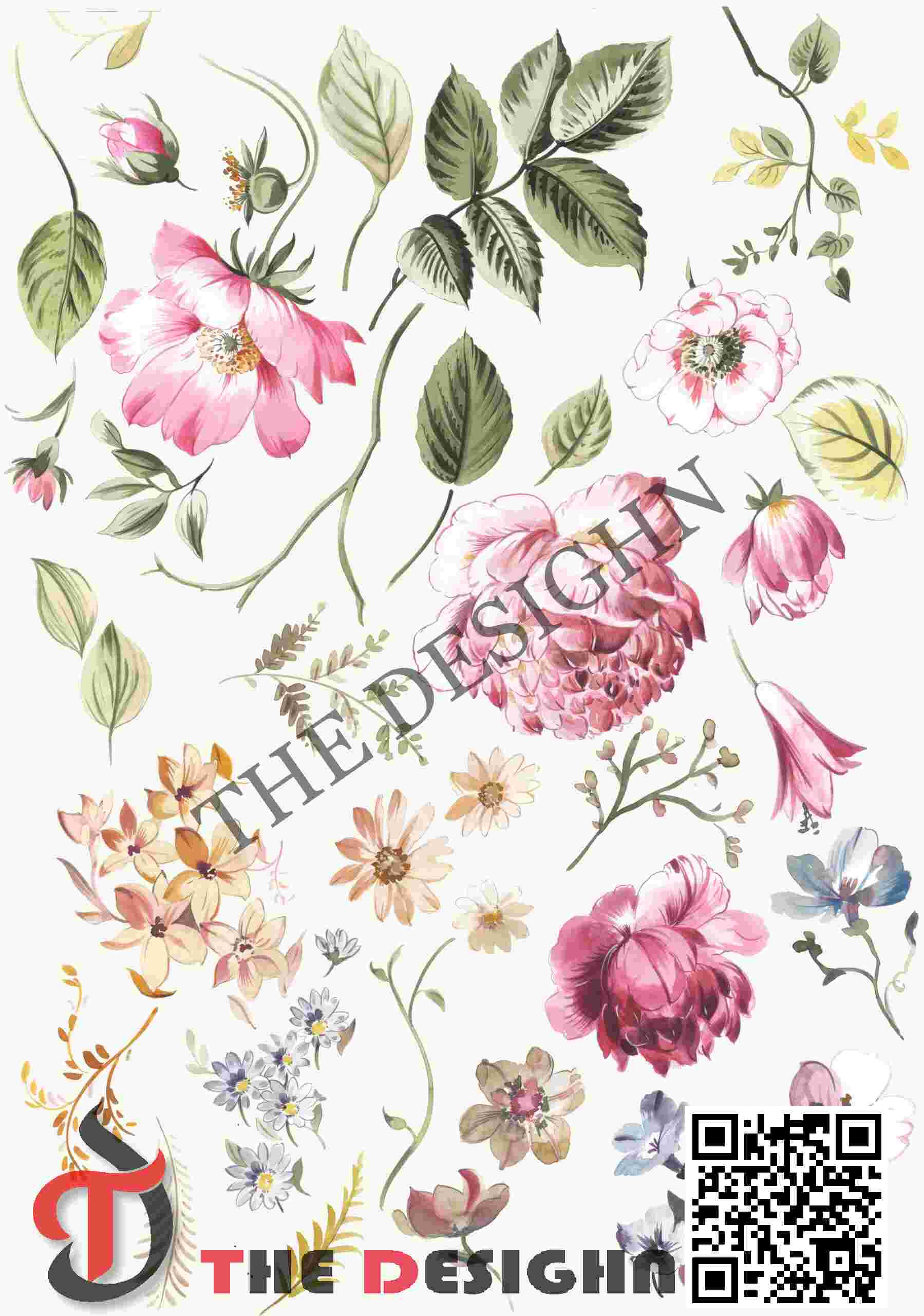 • Pigment Dispersion (Zonal): The design features “Viscous Zonal Graduation.” Dispersion is strictly organized by the “radial” structure of the blooms. The color moves from high-density, opaque crimson centers to light, vaporous “washed” ivory and pink tints at the petal tips, mimicking the natural movement of liquid pigments meeting a drying mineral surface.