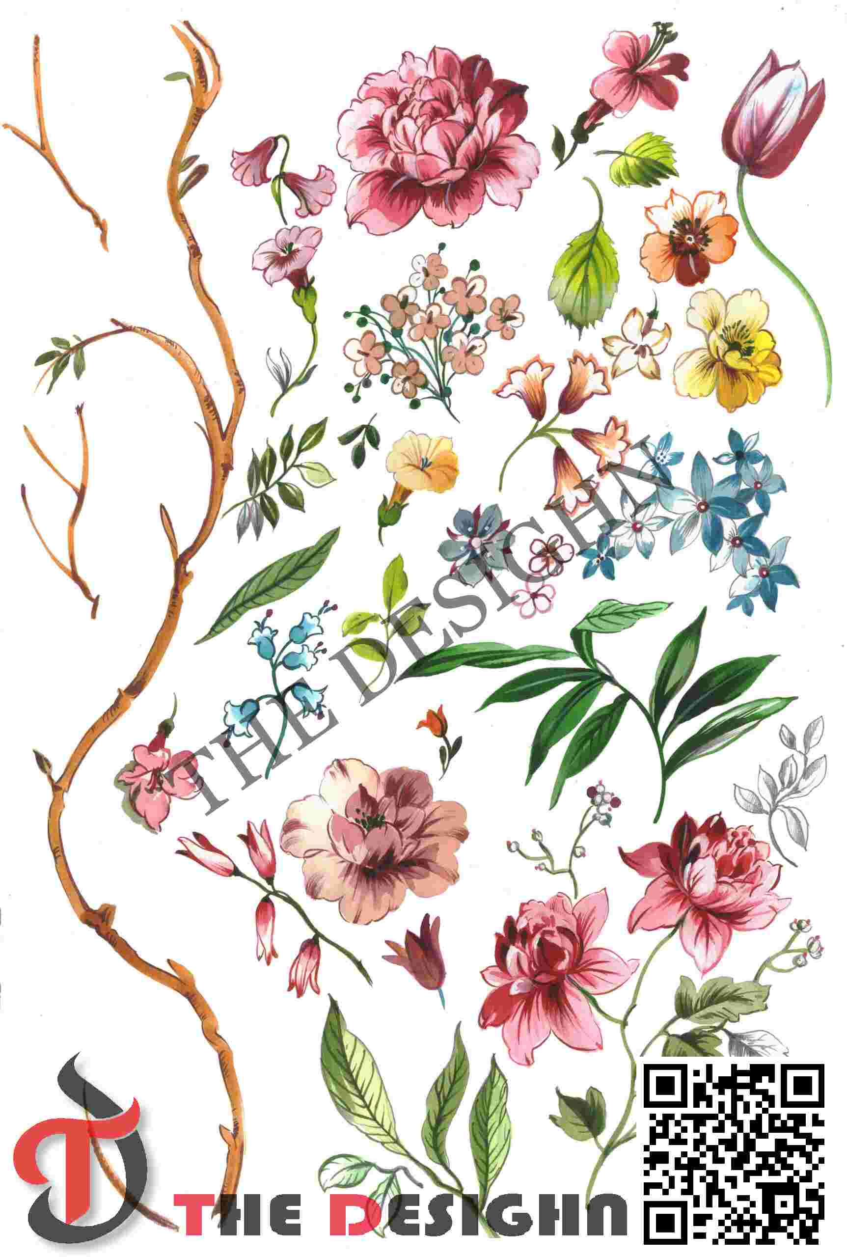 Visual Dispersion (Mechanical): The design exhibits “Aqueous Scumble-Mottling Dispersion.” The pigments are dispersed in a combination of smooth, liquid washes and high-friction “dry-brush” accents characteristic of Wet-on-Dry Watercolor. This provides a tactile “velvet” surface quality where color density is intentionally fractured at the petal edges to mimic natural light refraction, allowing the background white to “vibrate” through the darker tones.