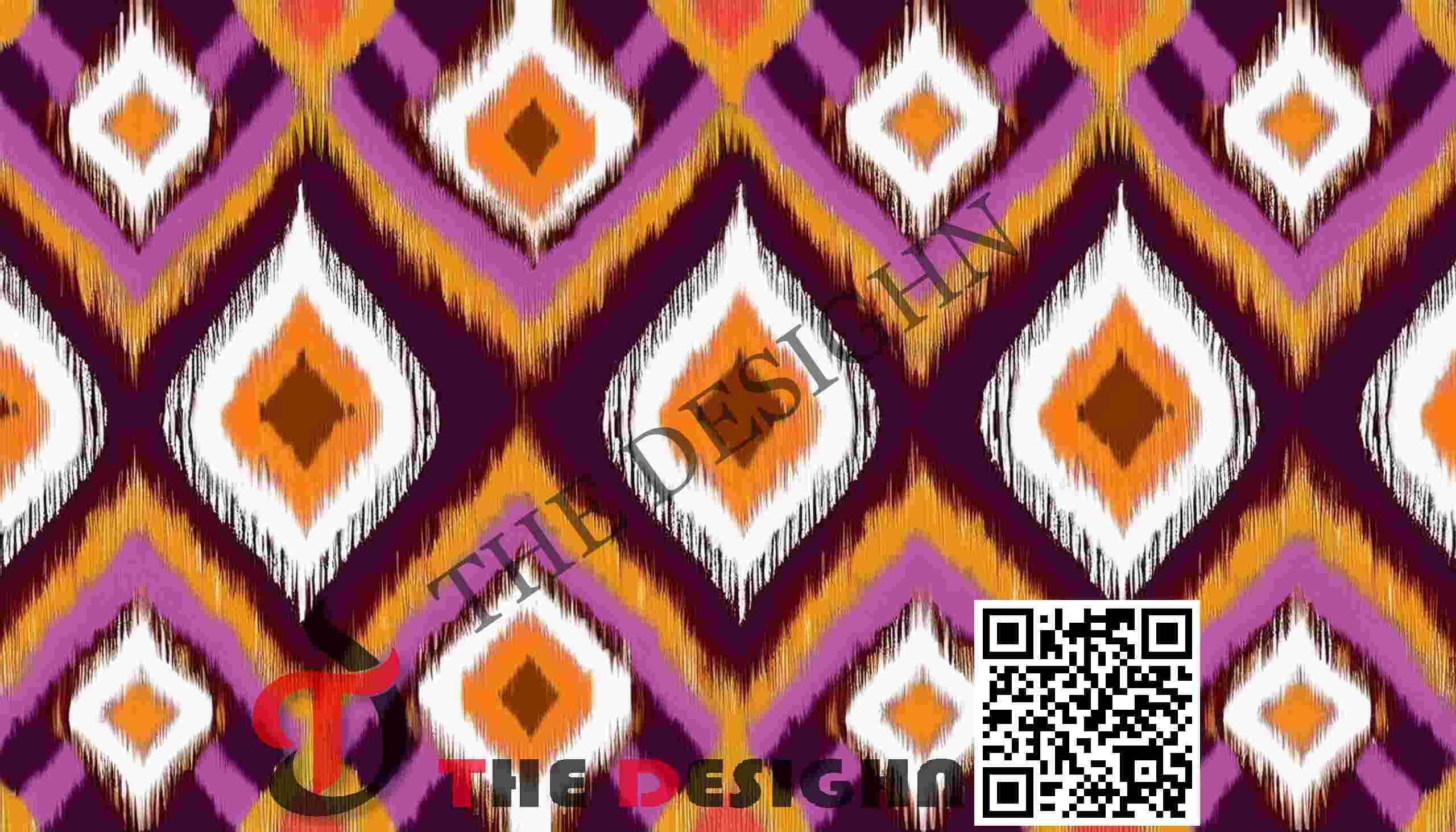 Visual Dispersion (Mottled): The primary plum and amber color zones exhibit “Internal Wash Mottling”. The pigments are dispersed in dense, uneven clusters that suggest a heavy-gauge woven ikat technique, providing a tactile, hand-painted surface quality.