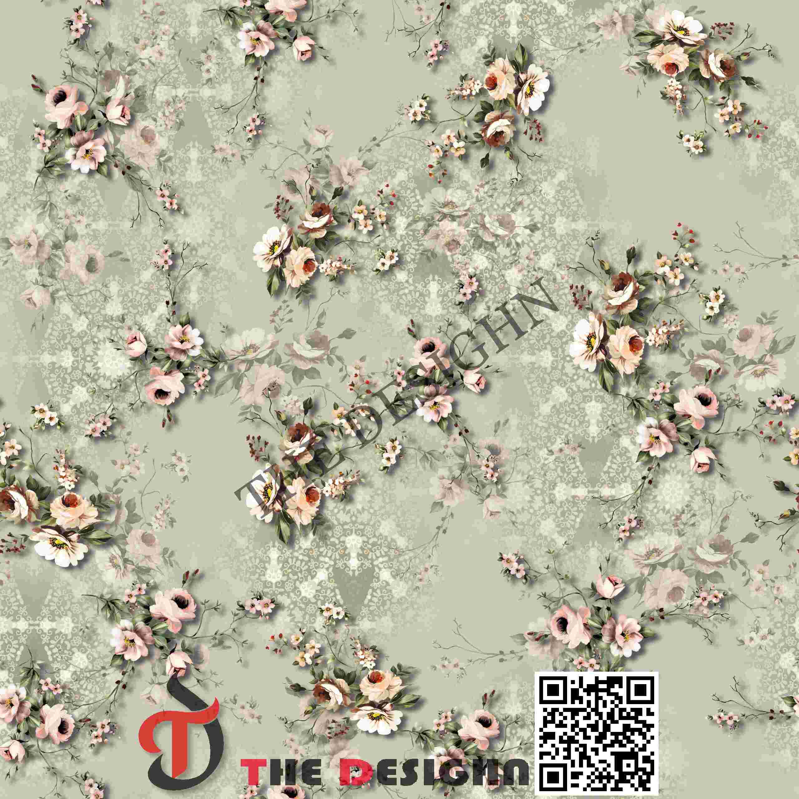 • The Look: The composition feels like an archival luxury textile that has been reimagined for a contemporary setting. It maintains a sense of “Timeless Sophistication” through its balanced use of floating bouquets and a multi-layered, weathered background.