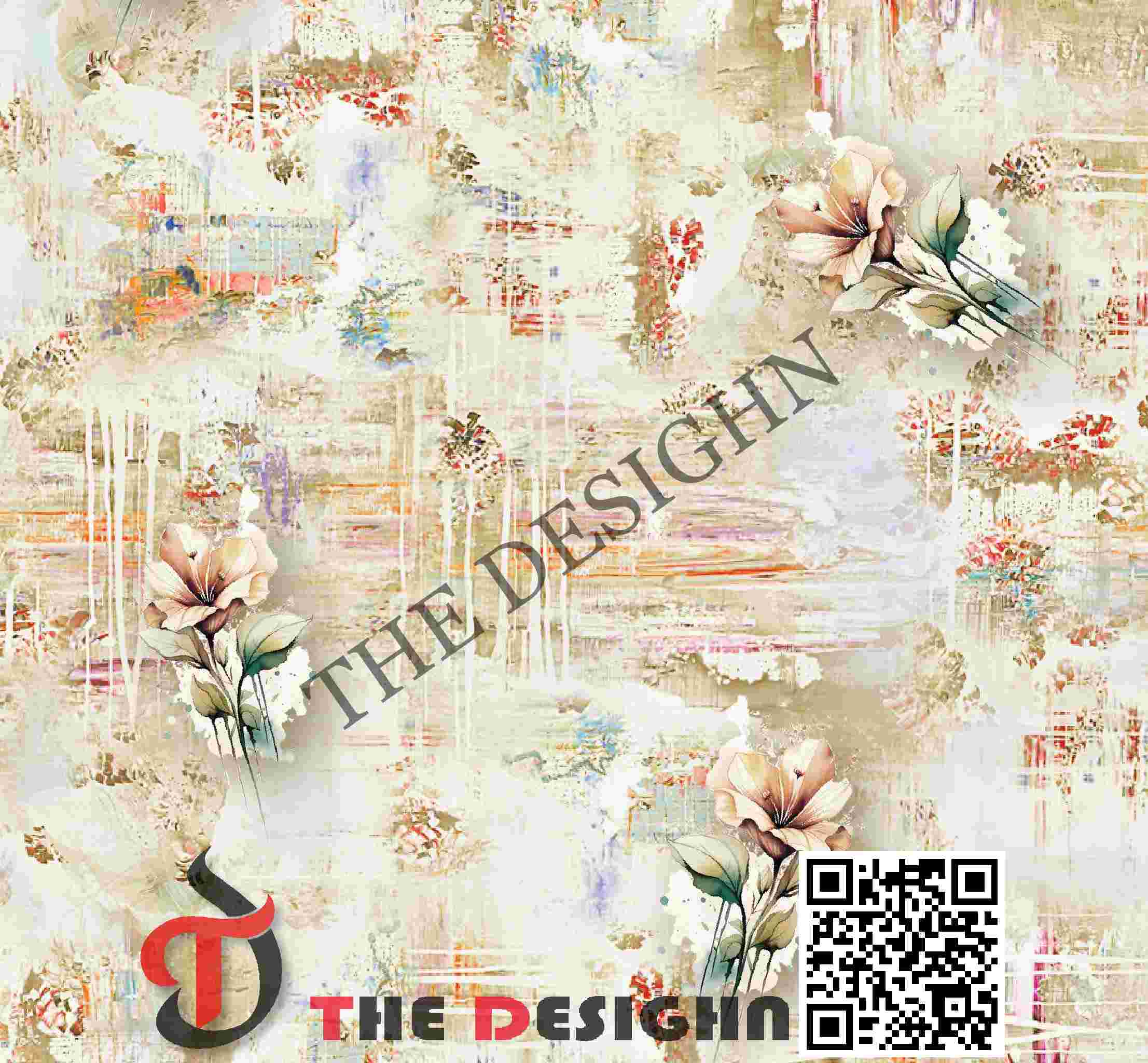 Edge Dispersion (Jagged-to-Frayed): The boundaries of the main forms feature “Shattered Linear Dispersion”. While the flowers have clear silhouettes, the background textures exhibit a jagged, “dragged” edge where the pigment has been pulled vertically, mimicking the physical behavior of moisture traveling down a vertical surface.