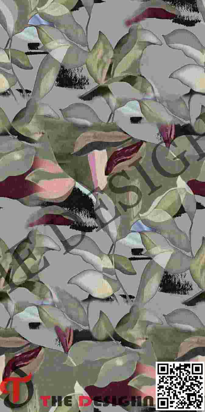 Pigment Dispersion (Zonal): The design features “Crystalline Zonal Graduation.” Within the mauve and sage leaves, the color is dispersed in hard-edged, “faceted” zones—moving from high-density solid color to light, luminous tints—mimicking the way light reflects off a frost-covered surface.