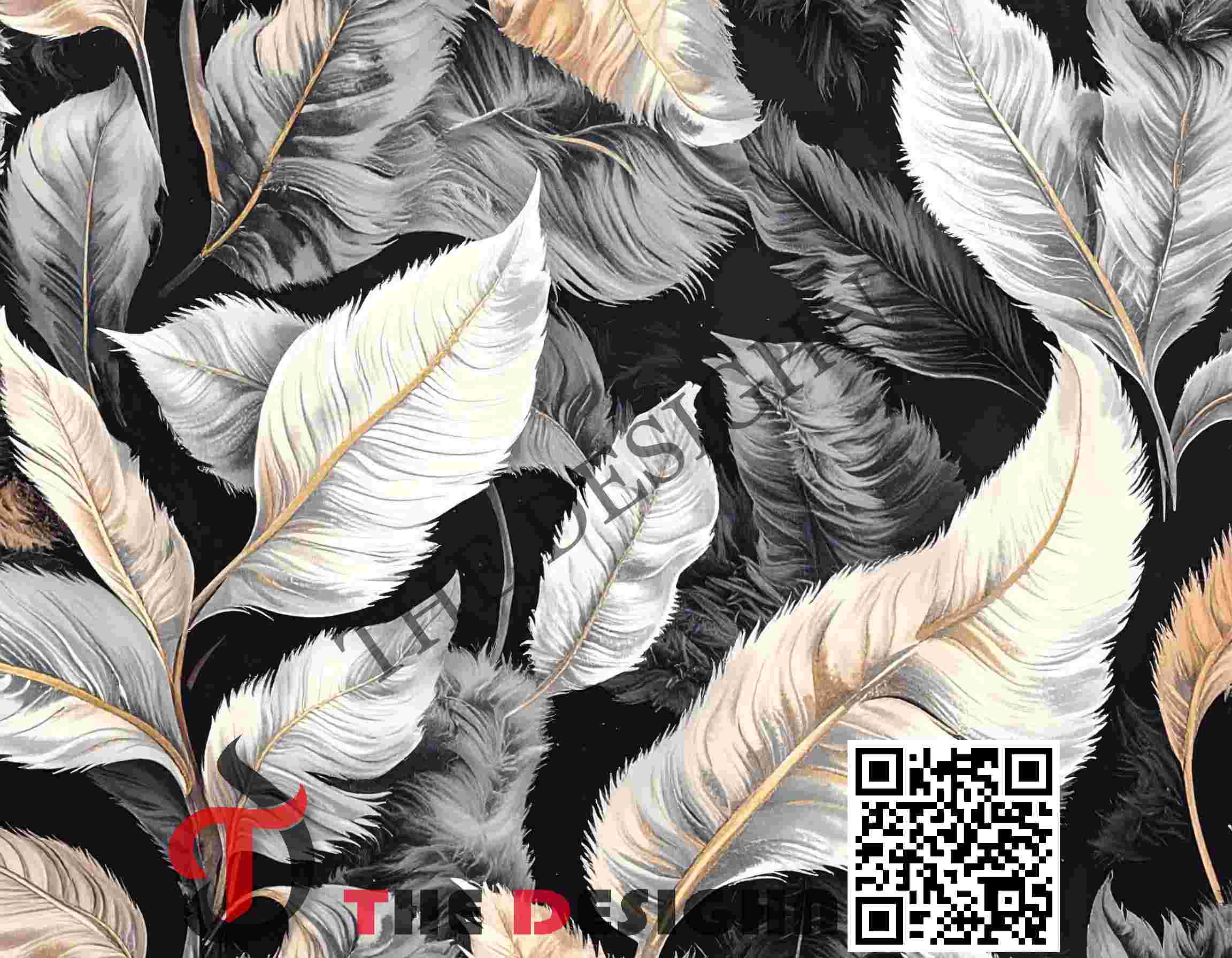 Pigment Dispersion (Zonal): The design features “High-Contrast Zonal Saturation.” Saturated white and cream pigments are dispersed in dense, opaque pockets at the center of the foreground feathers, immediately surrounded by zones of thin, “ghosted” grey bristles that melt into the black field.