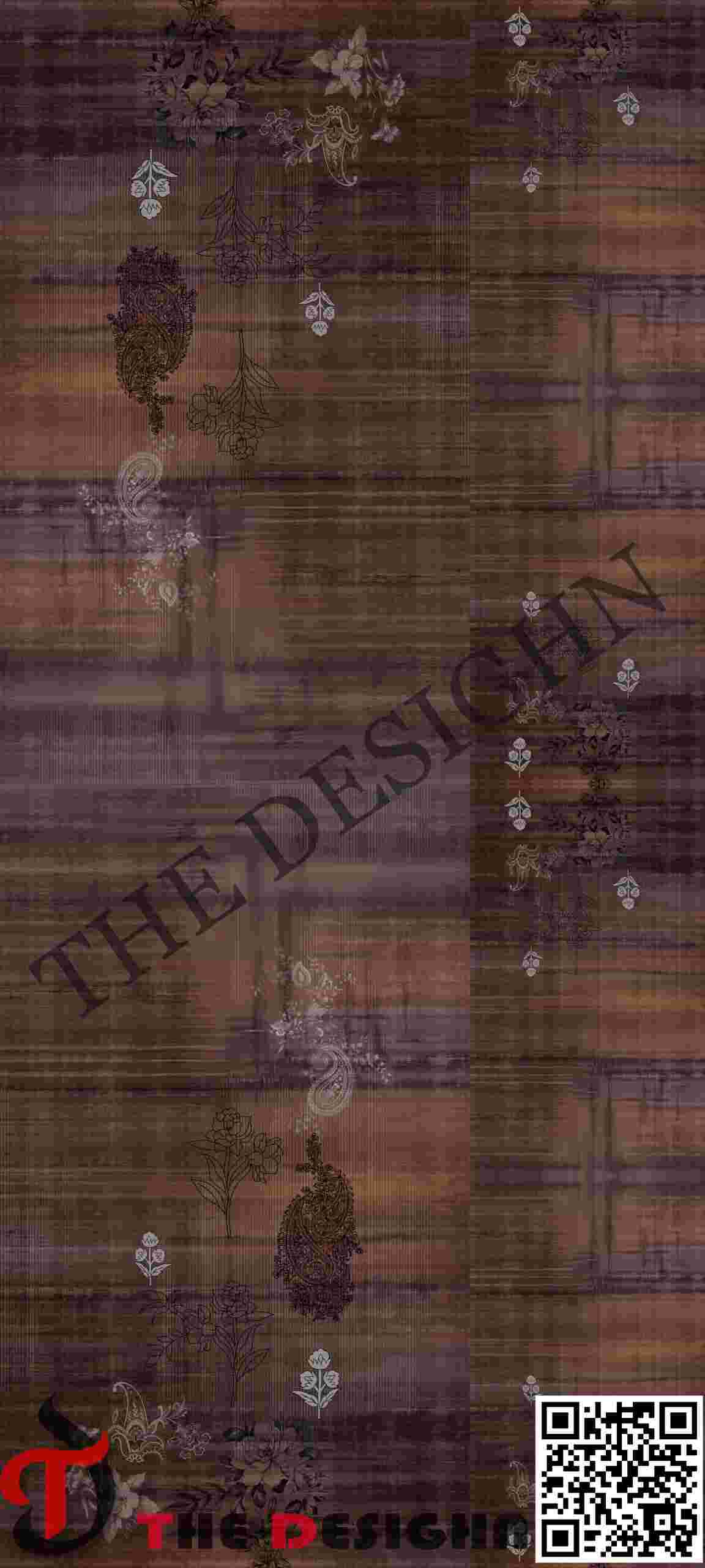Etched Paisley & Florals: Floating across the field are delicate line-art motifs. These include traditional Kashmiri-style Paisleys and fine-line botanical sprigs. Unlike bold prints, these are rendered as subtle “etchings” in charcoal and silver-white, adding an artistic, hand-drawn quality.