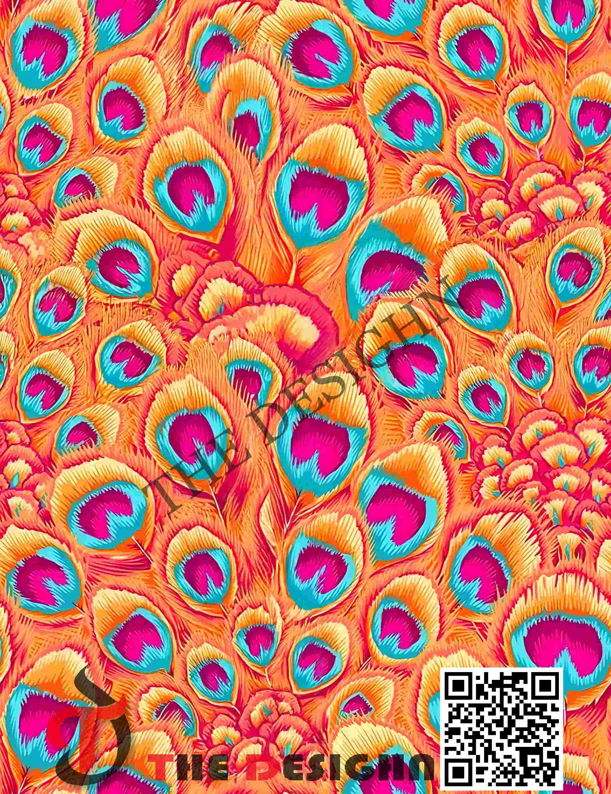 Pigment Dispersion (Zonal): The design features “Crystalline Linear Graduation.” Dispersion is strictly organized by “contour density.” The color exists in a state of maximum, opaque saturation within the turquoise “iris” and fuchsia “pupil” of each feather, immediately transitioning to a “granular” or “frayed” lower density at the trailing “barb” edges, mimicking the physical movement of heavy pigments meeting a textured substrate.
