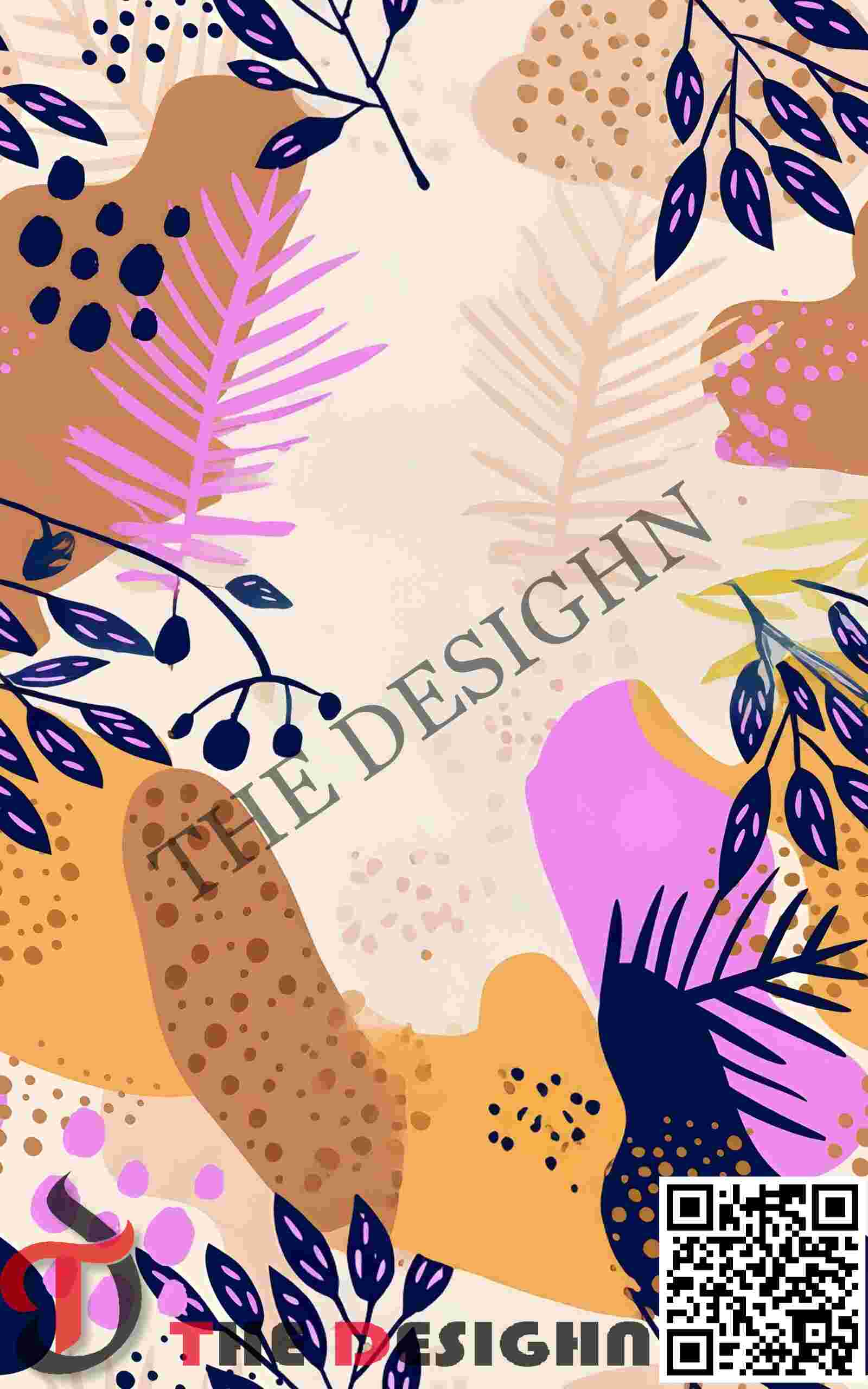 • Visual Dispersion (Mechanical): The design exhibits “Aqueous Parchment-Mottling Dispersion.” Within the ochre and pink “blob” shapes, the pigments are dispersed in granular, semi-translucent layers characteristic of Digital Gouache. This provides a tactile “matte” surface quality where color density is intentionally varied, mimicking the way liquid dye is absorbed into high-quality cardstock or heavy textile fibers.