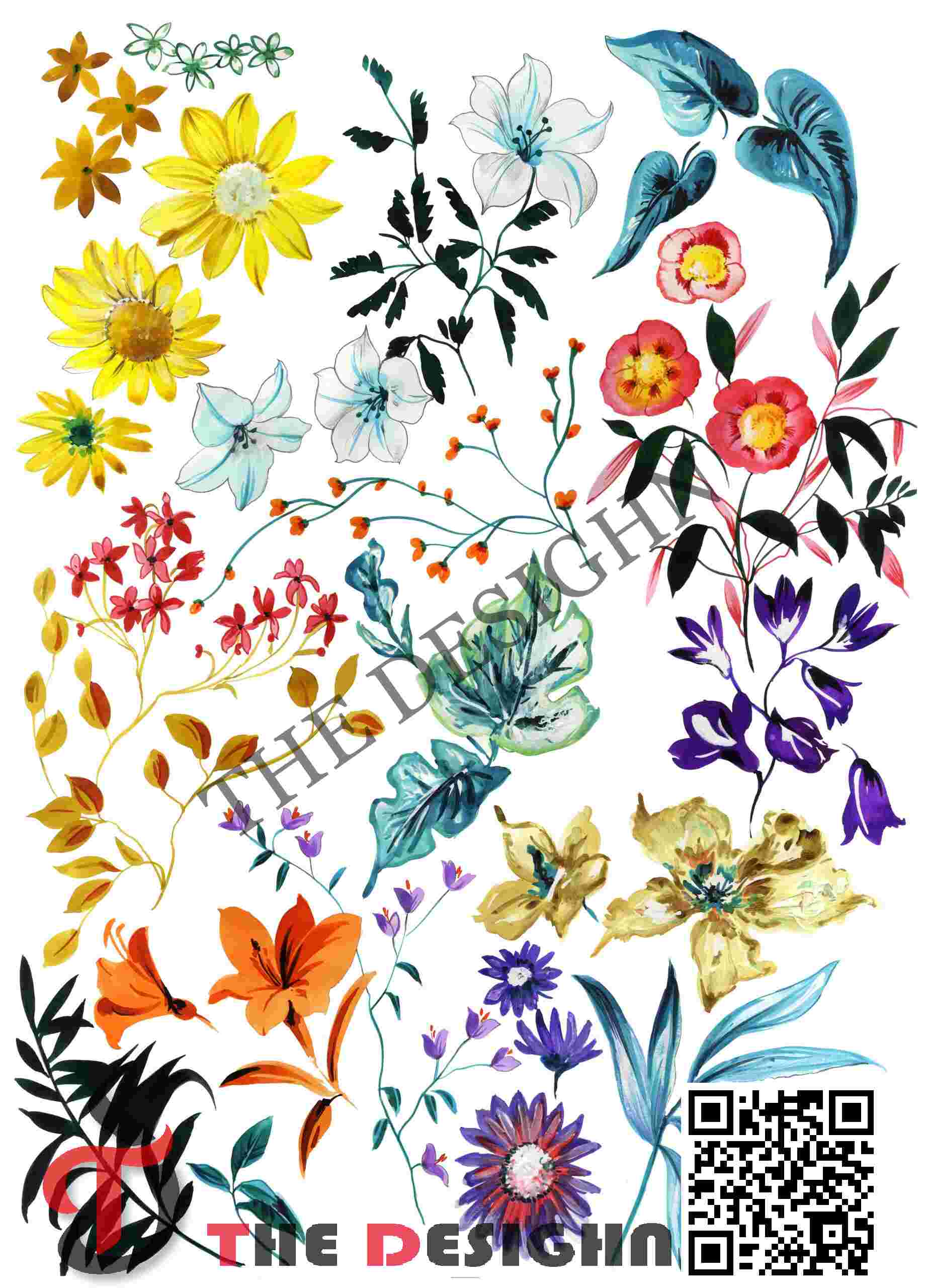 Pigment Dispersion (Zonal): The design features “Viscous Zonal Graduation.” Dispersion is strictly organized by the “radial” structure of the blooms. The color exists in a state of high-density saturation at the base of the flowers, immediately transitioning to a lower density and higher transparency at the tips, mimicking the natural movement of liquid pigments meeting a drying mineral surface.