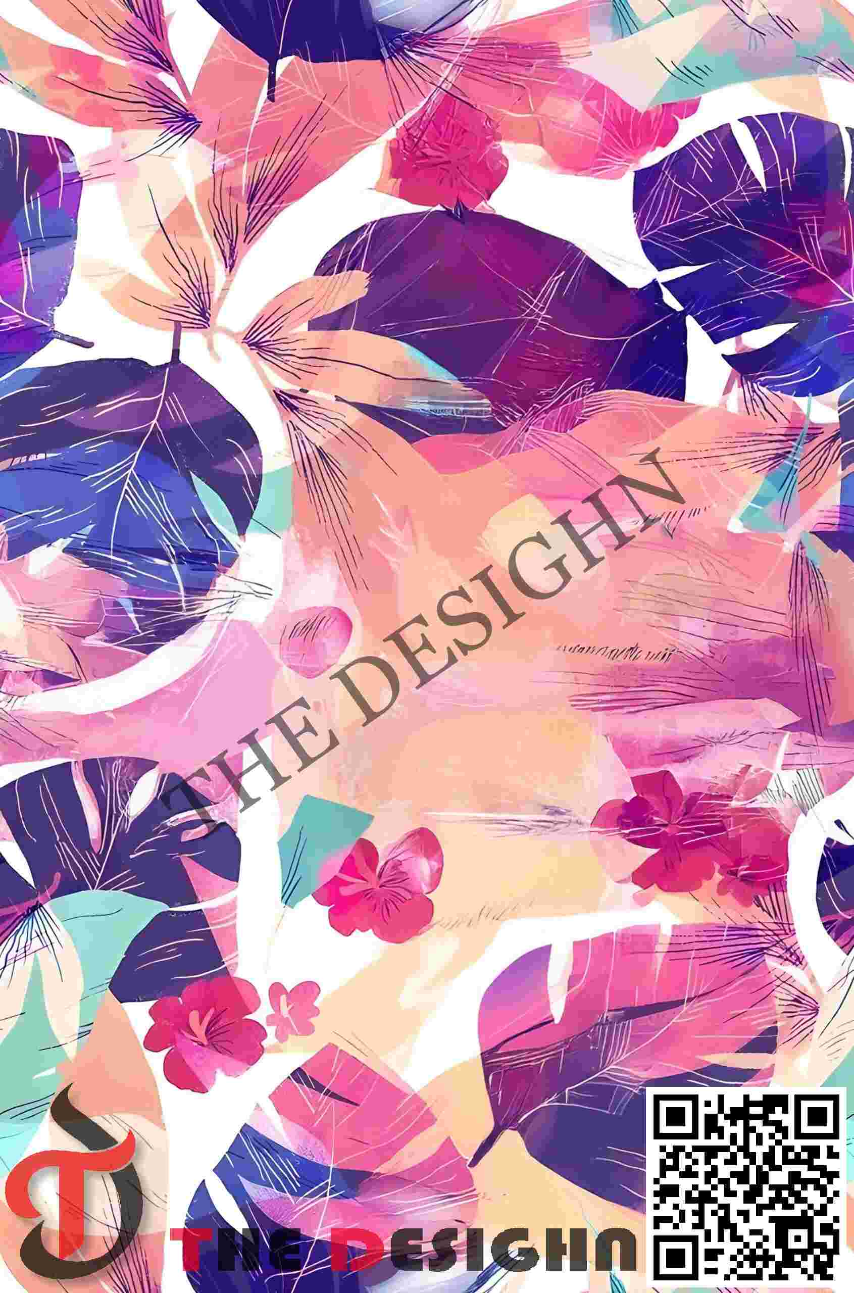 • Pigment Dispersion (Zonal): The design features “Viscous Zonal Graduation.” Dispersion is strictly organized by “layering priority.” The color exists in a state of high-density saturation where the amethyst and peach washes intersect, immediately transitioning to an ethereal “bloomed” lower density at the trailing edges of the leaves, mimicking the natural wicking of ink meeting a drying mineral paper.