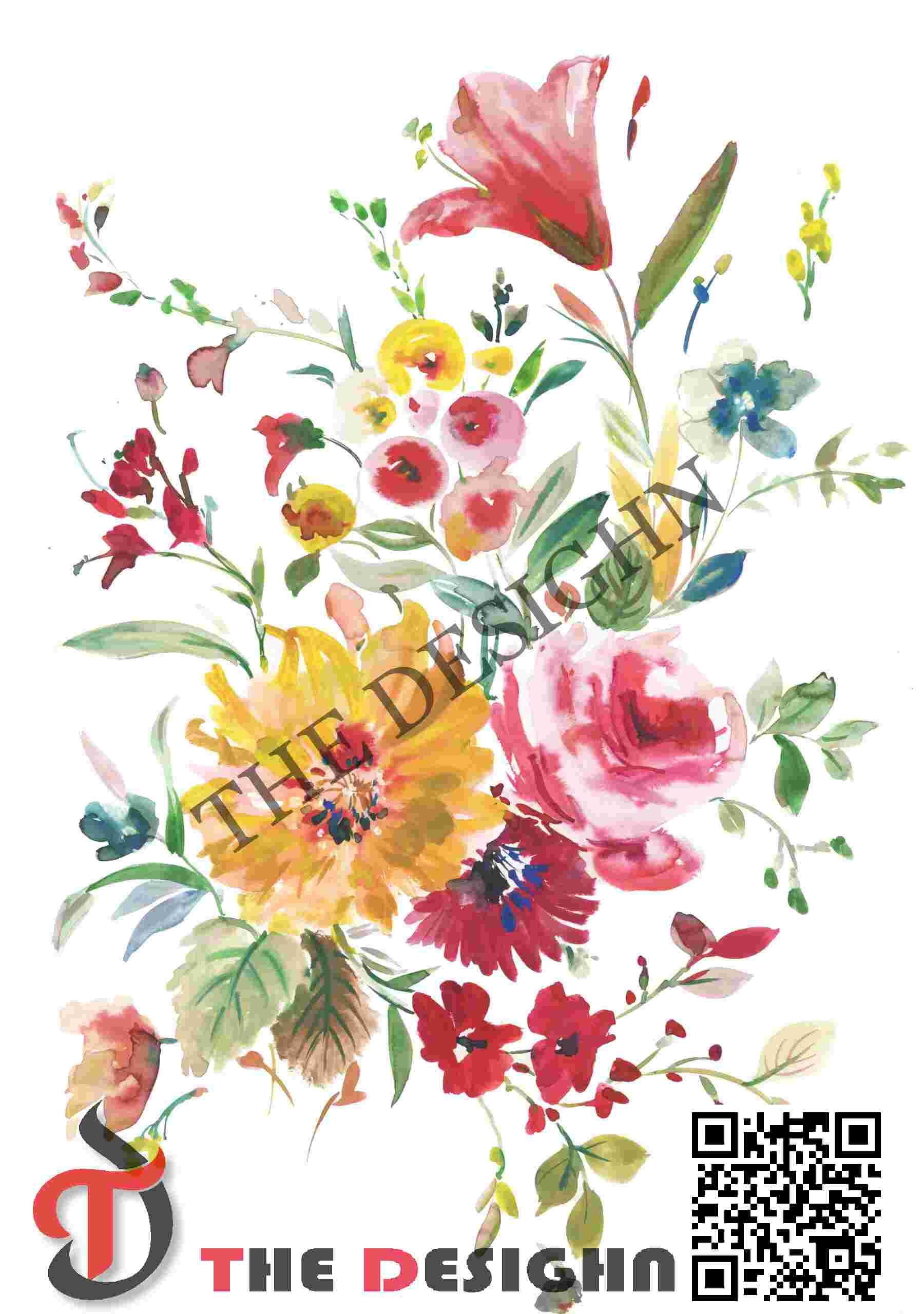 Visual Dispersion (Mechanical): The design exhibits “Aqueous Scumble-Mottling Dispersion.” The pigments are dispersed in a combination of smooth, saturated washes and high-friction “dry-brush” accents characteristic of Wet-on-Dry Watercolor. This provides a tactile “velvet” surface quality where color density is intentionally fractured at the petal edges to mimic natural light refraction, allowing the background white to “vibrate” through the darker tones.