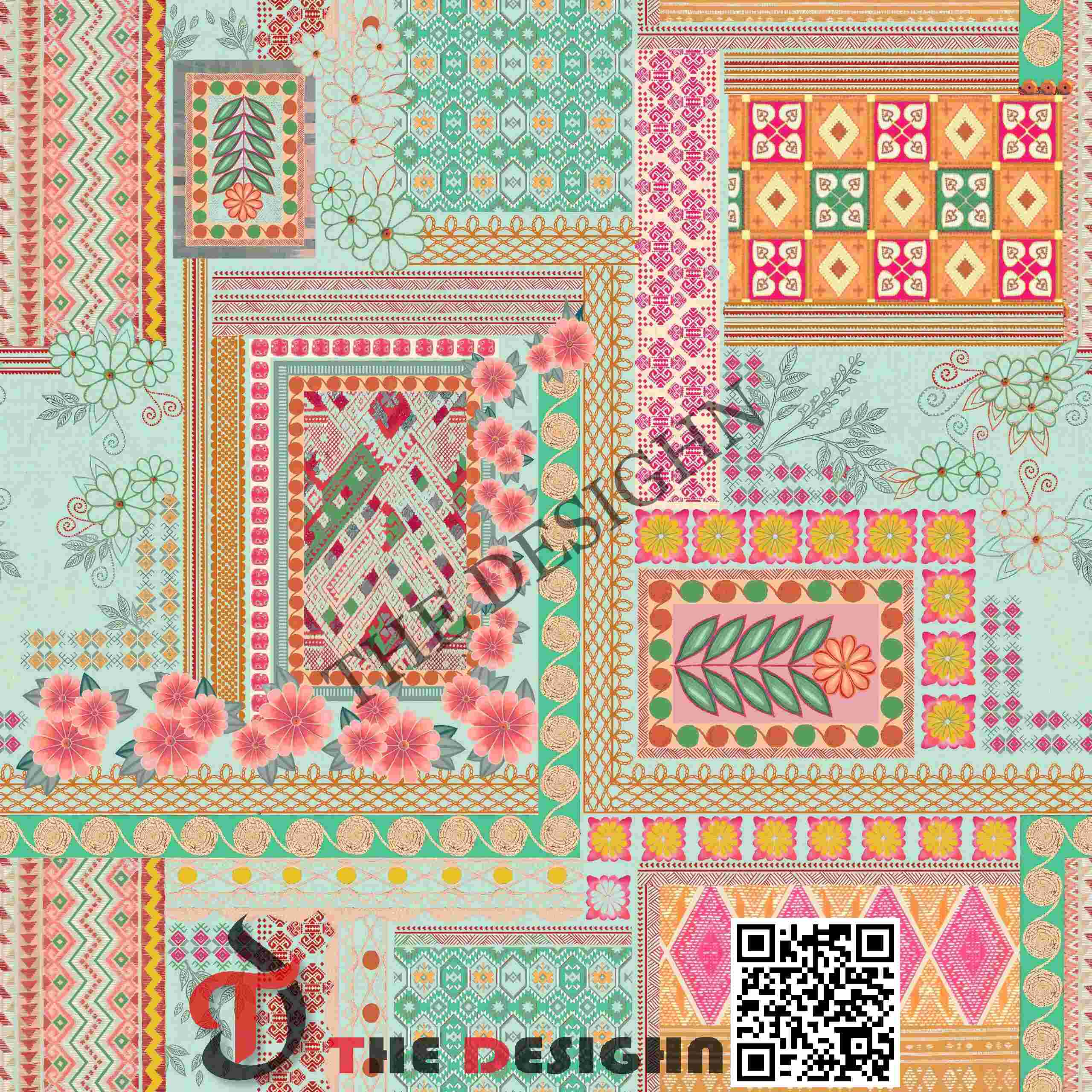 Edge Dispersion (Sharp-to-Defined): The boundaries of the main forms feature “Crisp Structural Dispersion”. Every block and motif maintains a razor-sharp edge, providing a clear foreground-background hierarchy essential for maintaining pattern legibility across complex fabric drapes.