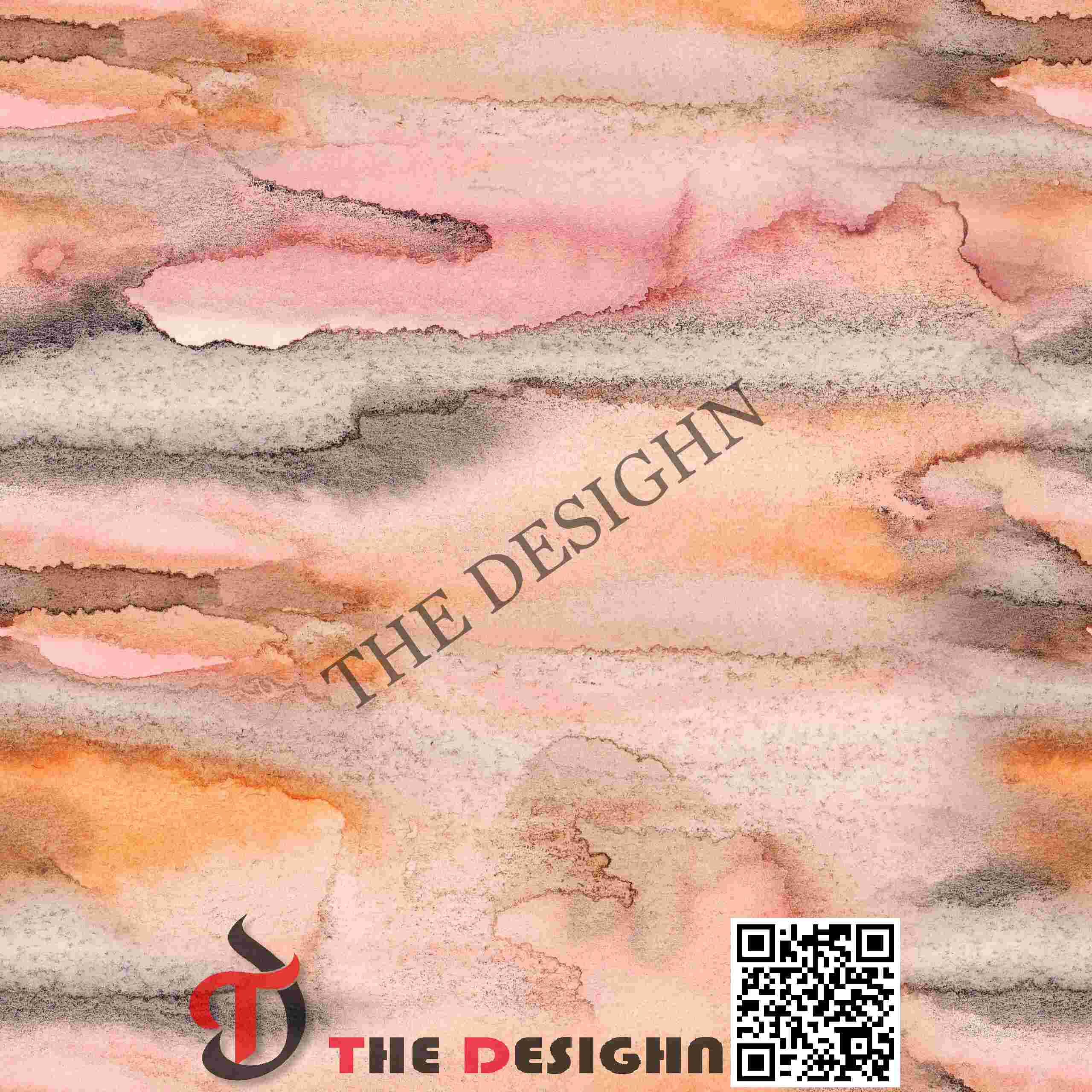 Visual Dispersion (Clouded): The primary peach and orange zones exhibit “Atmospheric Tonal Clouding”. The color is dispersed in soft, high-frequency clusters that suggest a “wet-on-wet” watercolor technique, giving the surface a tactile quality that mimics the physical grain of heavy paper.