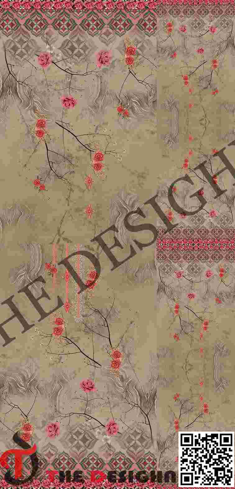 • Edge Dispersion (Sharp-to-Defined): The boundaries of the forms feature a “Defined Transition.” While the background utilizes a soft, marbled dispersion to create depth, the primary floral perimeters and geometric borders maintain a sharp, graphic dispersion (the “etched” look) to define their architectural shape, ensuring the motifs feel hand-rendered rather than mechanically stamped.