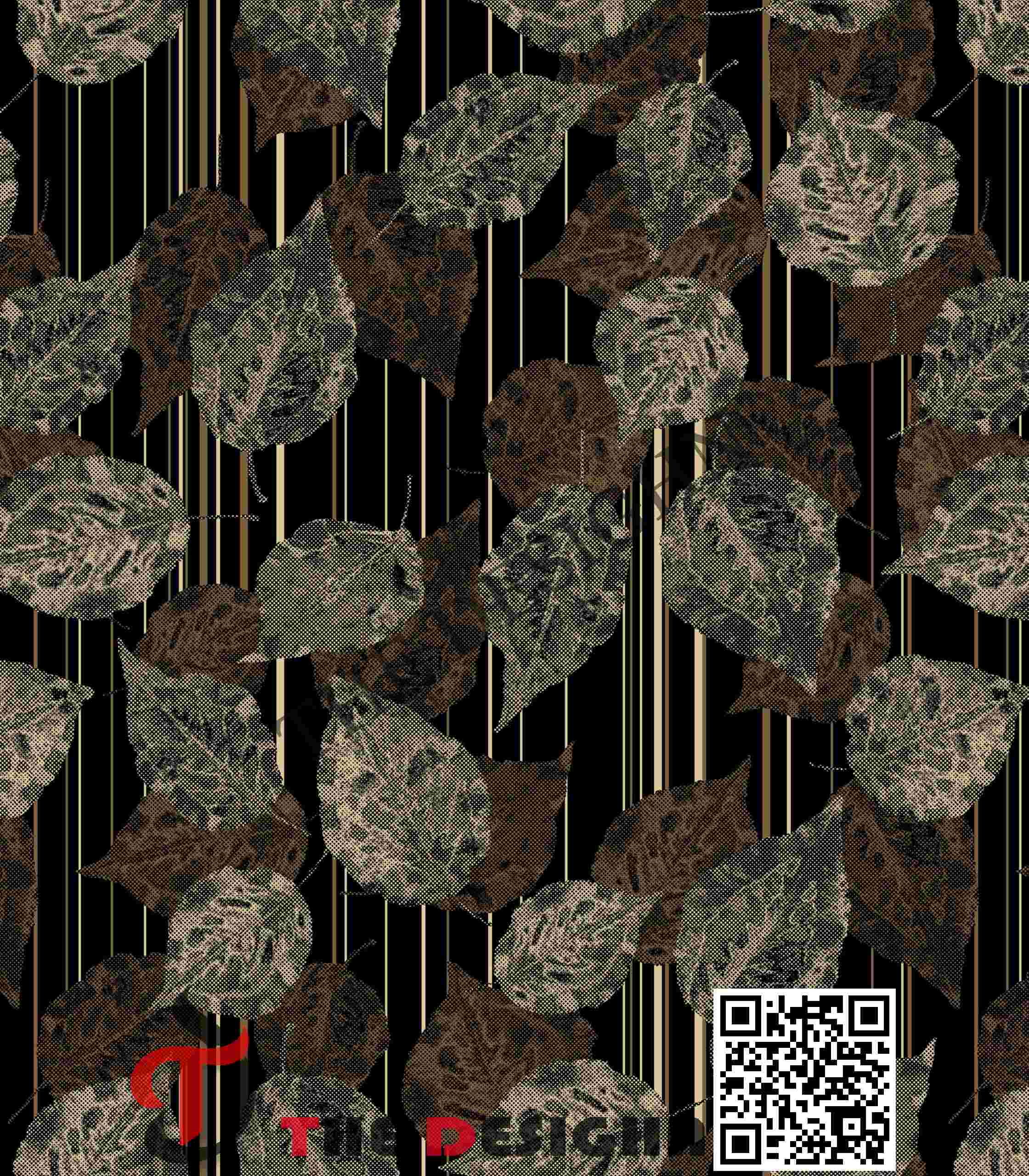 • Visual Dispersion (Mechanical): The design exhibits “Mechanical Halftone Dispersion”. The pigments within the leaves are dispersed in a precise, repeating “dotted” or “pitted” pattern that mimics the texture of Hand-Block Printing or Screen-printed Industrial Textiles. This provides a tactile, weathered surface quality.