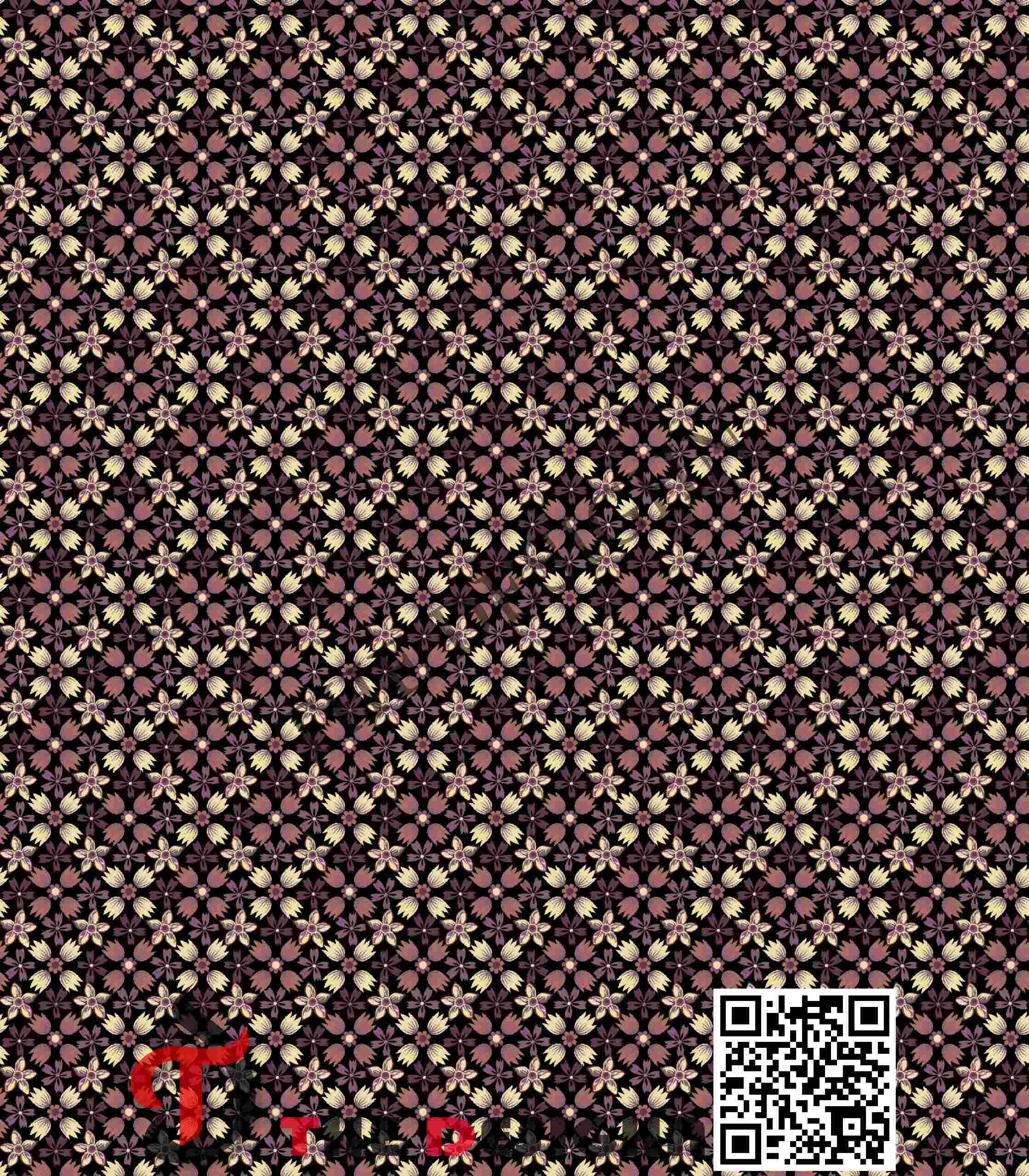• Pigment Dispersion (Zonal): The design features “Zonal Petal Graduation”. Within each micro-flower, the color is dispersed in varying weights—from the high-density ivory centers to the fine, high-fidelity plum and rose stippling at the petal tips—creating a sense of physical material relief and depth against the dark ground.