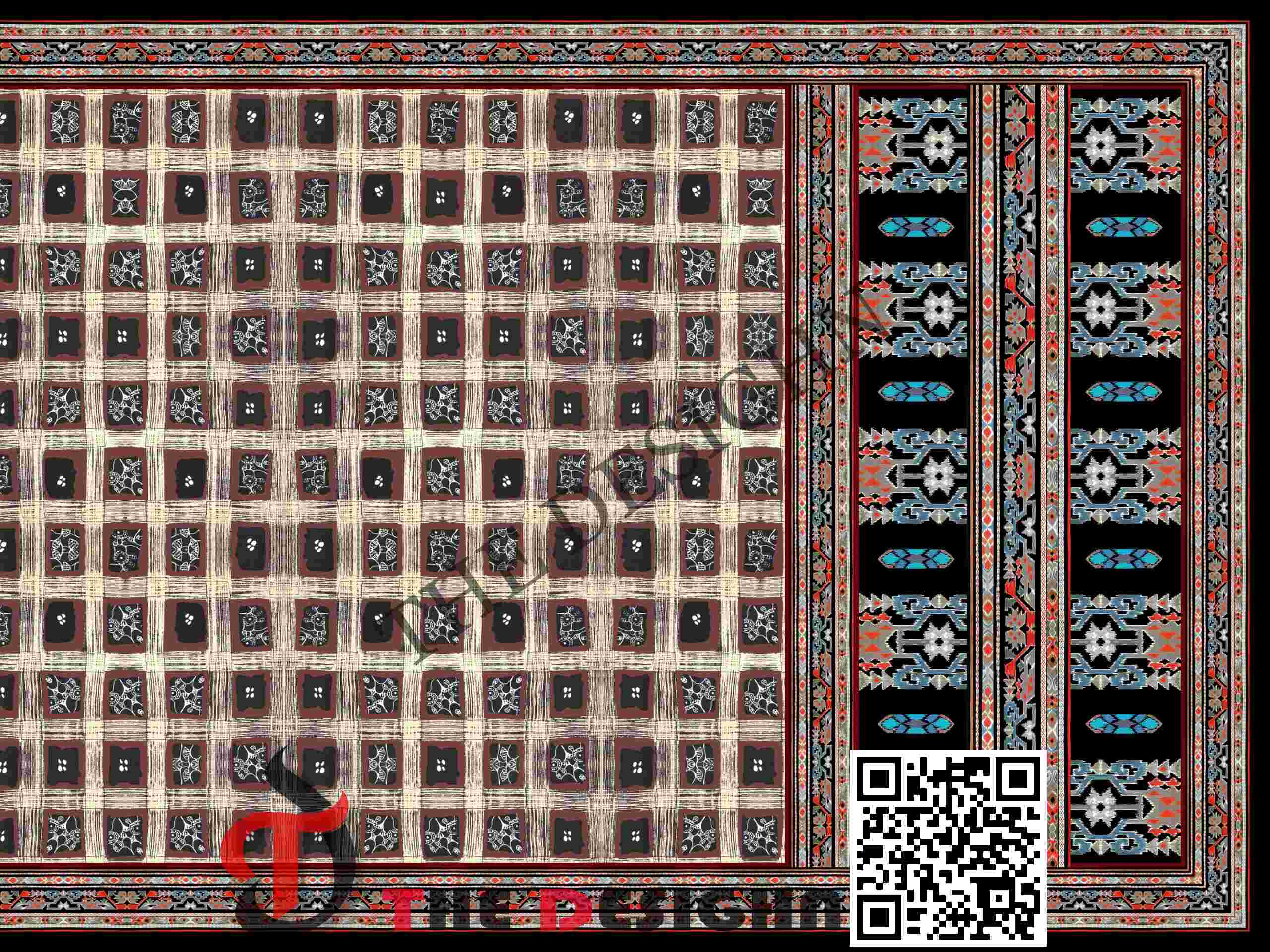 Visual Dispersion (Mechanical): The design exhibits “Mechanical Weave Dispersion”. The pigment within the grid field is dispersed in fine, internal “cross-hatch” lines and stippled cells that mimic the texture of hand-loomed fabric, providing a tactile, “hand-rubbed” surface quality across the main field.