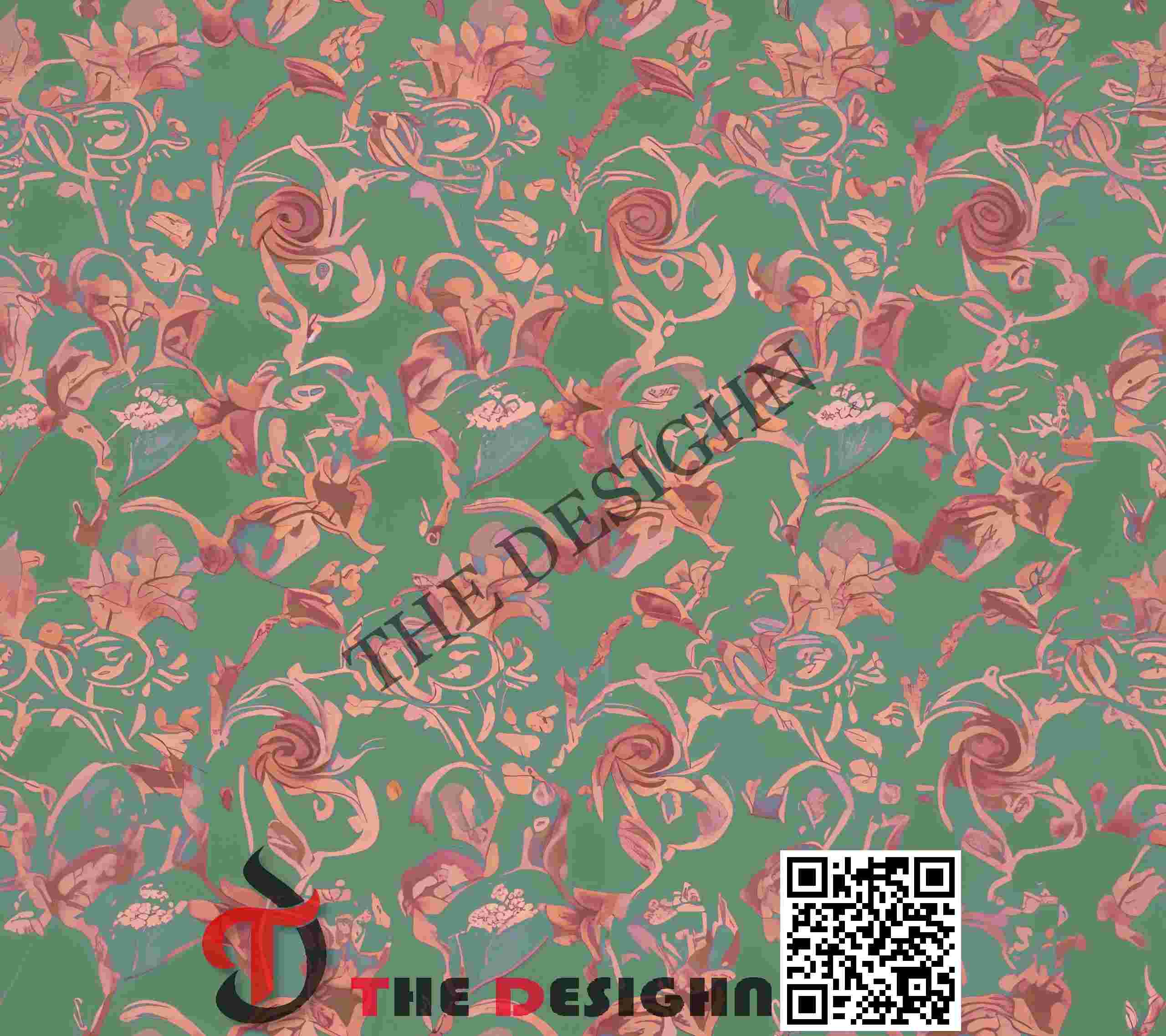 Pigment Dispersion (Mottled): Within the coral and peach motifs, the pigment shows “Granular Tonal Mottling.” The color is dispersed unevenly in fine, cloud-like clusters, providing an organic, hand-painted texture that prevents the warm tones from looking flat or digital.