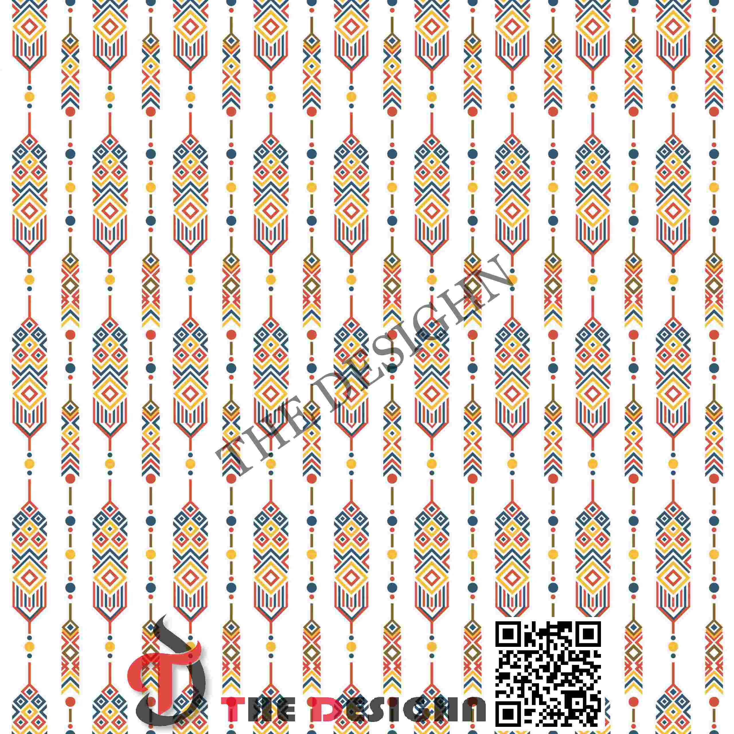 The design is composed of repeating vertical columns of elongated geometric motifs.