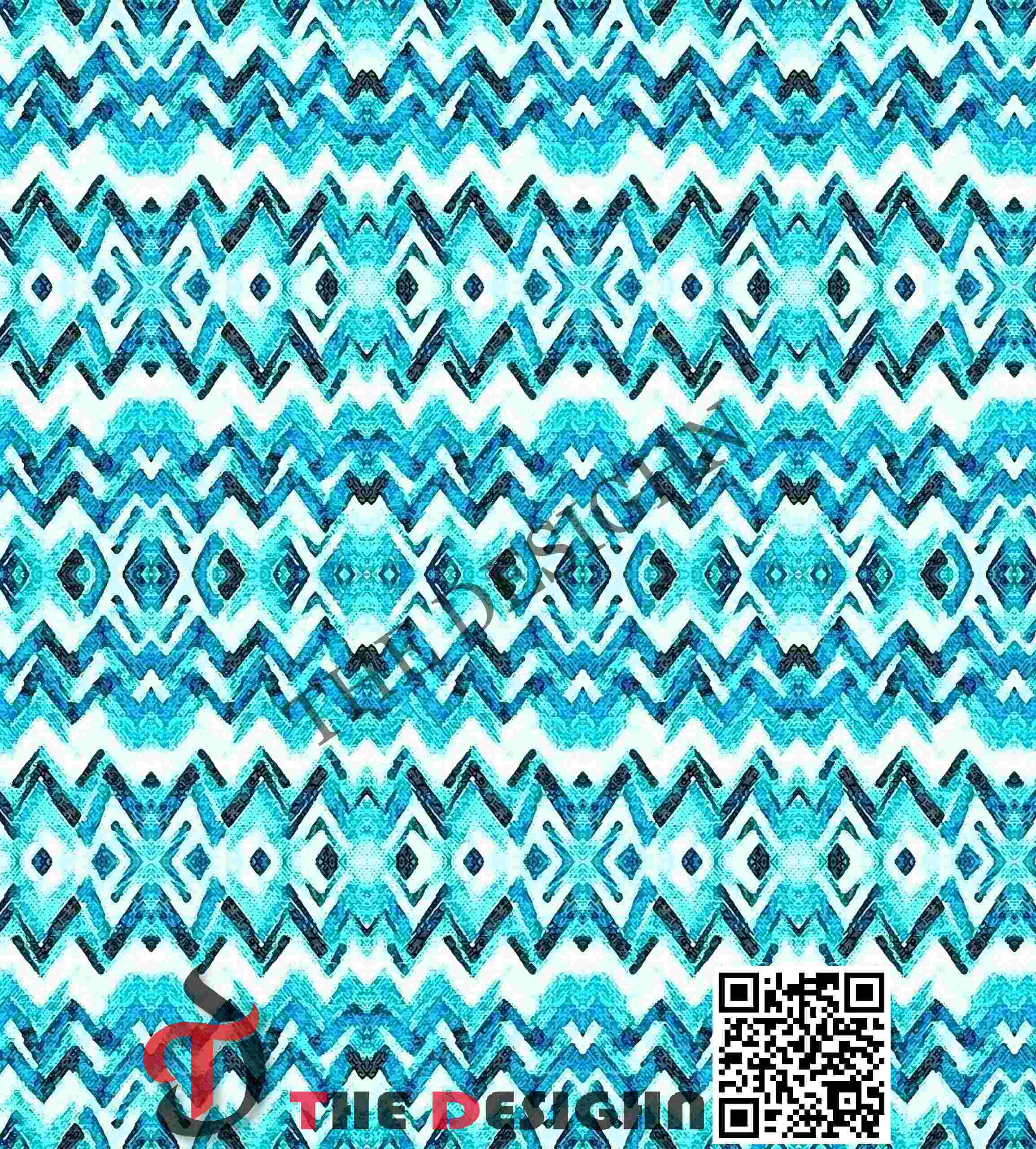 The design is arranged in horizontal bands of repeating zigzags and diamond motifs, creating a strong sense of rhythm and movement.
