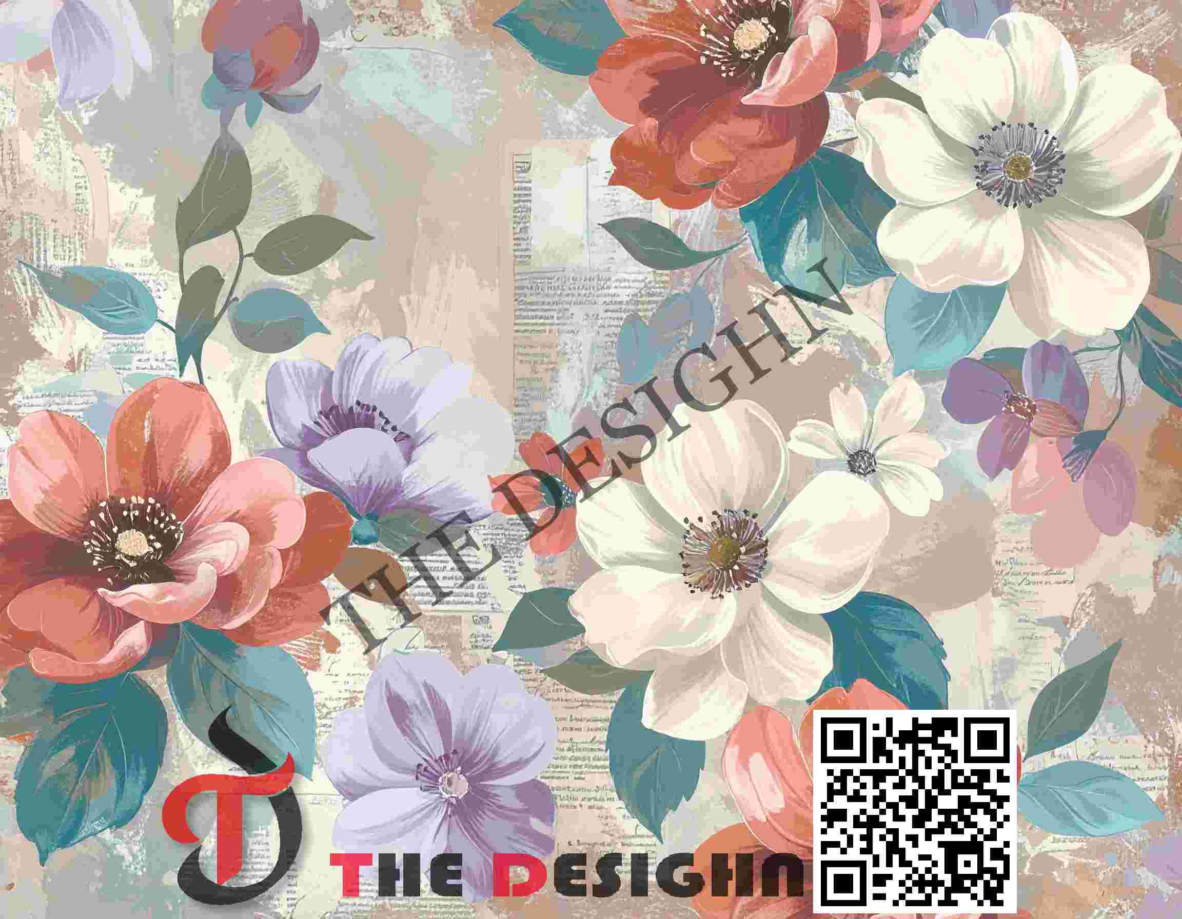 • The Look: It mimics a physical collage where flowers have been painted over layers of old letters, newspapers, and peeling wallpaper. It feels worn, historical, and tactile.