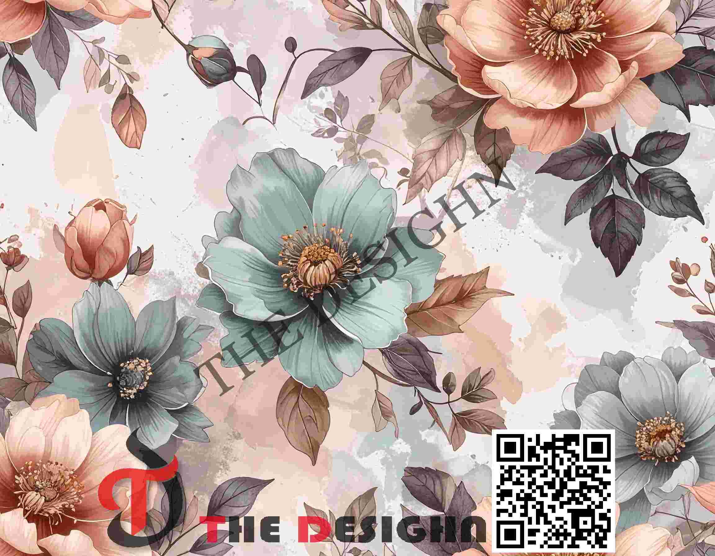 • The Look: Large, open blooms (wild roses and anemones) are painted in desaturated, earthy tones. The background has a tea-stained or parchment quality.