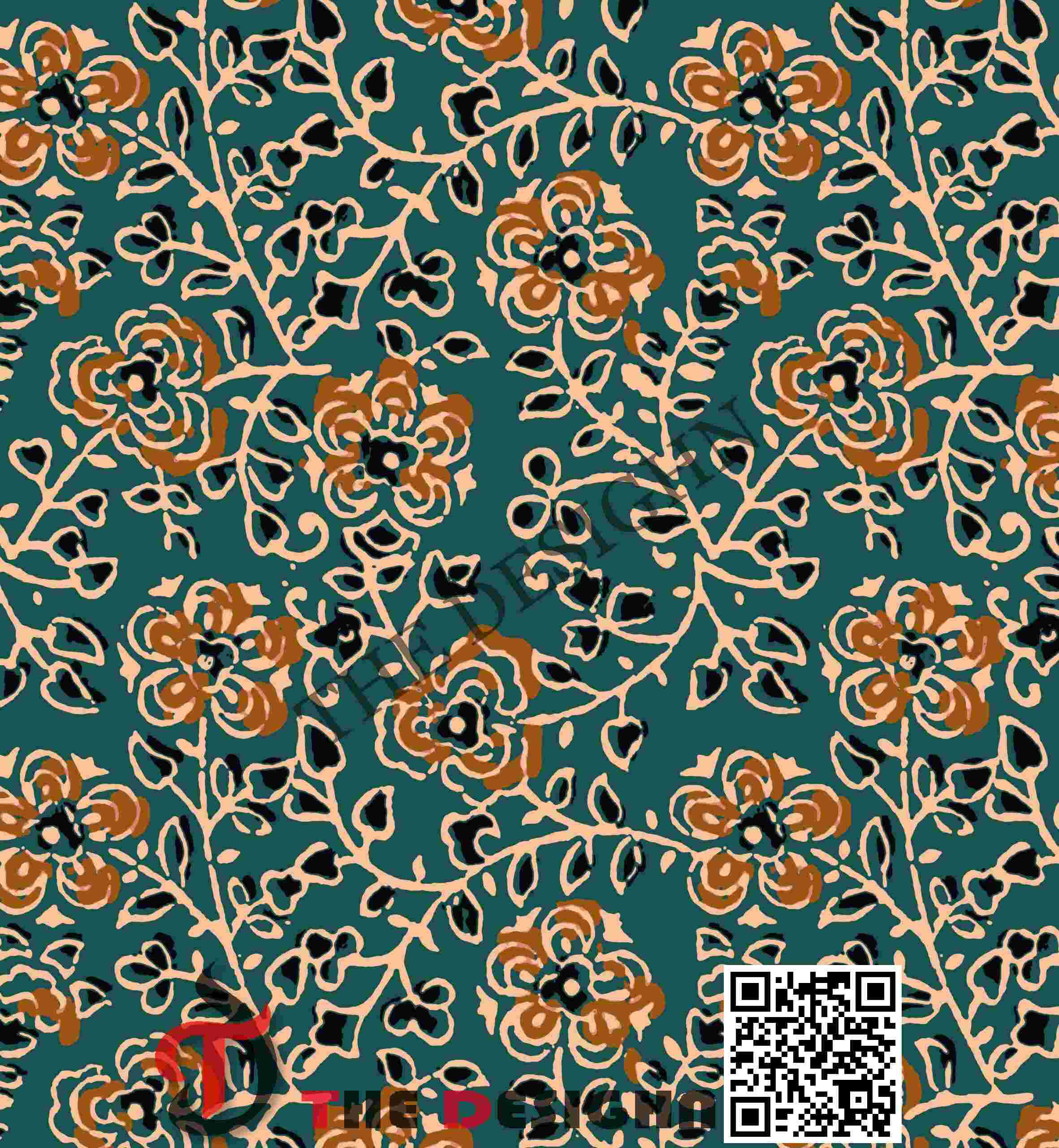 • Visual Dispersion (Segmented): The primary floral and leaf forms exhibit “Zonal Color Segmentation”. The color is dispersed in flat, opaque blocks within the individual motifs, suggesting a “screen-print” or “linocut” technique that creates a clean, modern surface quality without the use of gradients.